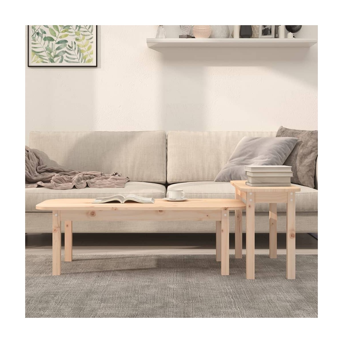 Da un toque de elegancia al salón con este elegante juego de mesas de centro de madera. Madera de pino maciza: La madera de pino maciza es un bonito material natural. La madera de pino tiene vetas rectas, y los nudos dan al material su distintivo aspecto rústico.Diseño que ahorra espacio: El tamaño diseñado con inteligencia de estas mesitas permite colocar la mesita más baja debajo de la más alta, para ahorrar espacio y mantener ordenada la casa.Superficie resistente: La robusta superficie es perfecta para colocar bebidas, comida y artículos decorativos.Múltiples usos: Puedes utilizar el juego de mesitas de centro de forma independiente o colocarlas juntas para lograr una combinación diferente. La mesita auxiliar apilable será la solución decorativa ideal para cualquier casa. Nota:Cada producto viene con un manual de montaje en la caja para facilitar el montaje.