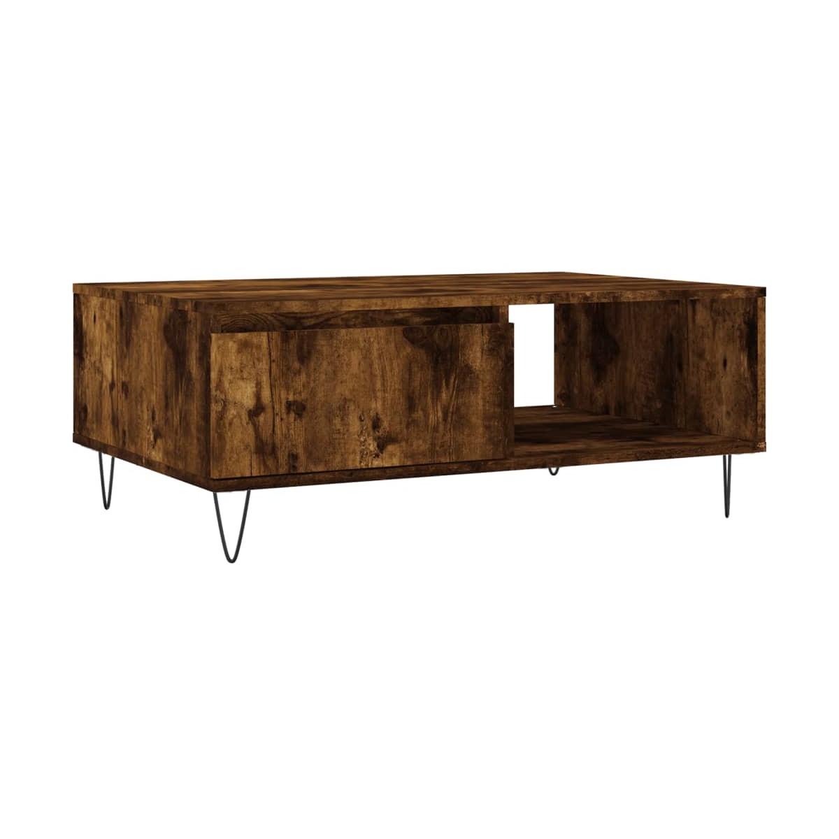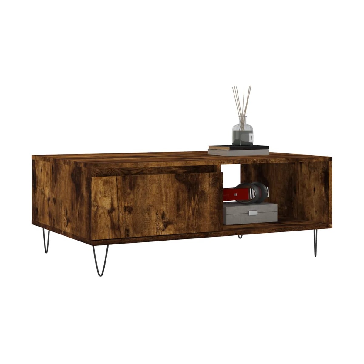 Funcional y bonita, esta mesa de centro se convertirá en el centro de atención de la estancia. Material robusto: La madera contrachapada tiene una calidad excepcional, con una superficie lisa y también cuenta con fuerza, estabilidad y resistencia a la humedad. Hecha de madera tecnológica, la mesa auxiliar es fácil de limpiar con un paño húmedo.Amplio espacio de almacenaje: Esta mesa de sofá tiene 2 compartimentos, que ofrecen un amplio espacio de almacenaje para mantener tus cosas bien organizadas y al alcance.Superficie estable: La estable superficie de la mesa de salón es perfecta para colocar libros, tazas y objetos decorativos.Patas de hierro: Las patas de hierro de la mesita de sofá garantizan su solidez y estabilidad.