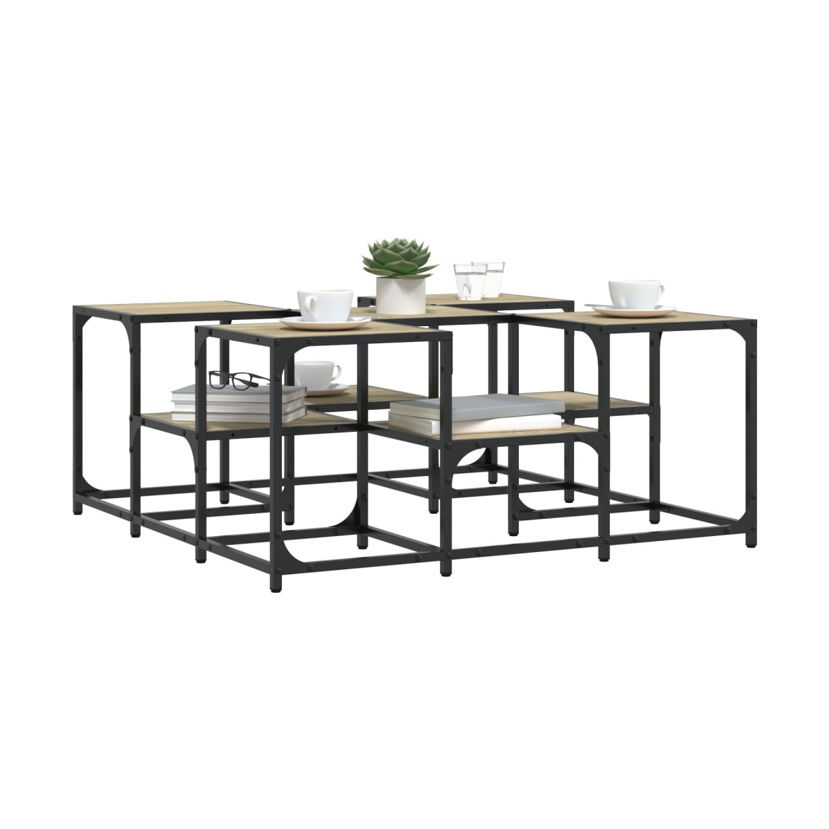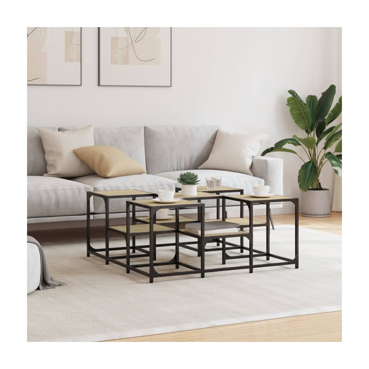 Decora el salón con esta elegante mesa de centro, que combina fácilmente con muebles de cualquier estilo. Material duradero: La madera contrachapada tiene una calidad excepcional, con una superficie lisa y también cuenta con fuerza, estabilidad y resistencia a la humedad. Hecha de madera contrachapada, la mesa auxiliar es fácil de limpiar.Superficie resistente a 2 alturas: Esta mesa de sofá está diseñada con 2 alturas de superficie para dar un aspecto a capas y ofrecer un amplio espacio para colocar libros, objetos decorativos y artículos de uso diario.Patas ajustables: Las patas regulables con tacos de plástico mantienen equilibrada la mesita de salón sobre suelos irregulares y aumentan la estabilidad.Estructura metálica: La estructura metálica añade un estilo industrial a la casa, además de garantizar su durabilidad y estabilidad.