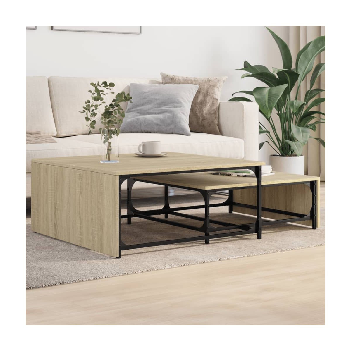Las 2 mesas de centro apilables son la alternativa perfecta para pisos pequeños o cualquier zona con espacio limitado. Material duradero: Las mesas apilables están hechas de madera de ingeniería, con una calidad excepcional y superficie lisa, además de ser fuerte, estable y resistente a la humedad.Diseño apilable: El set de mesas apilables tiene diferentes tamaños para cumplir con tus diferentes requisitos. La mesa más pequeña puede anidarse dentro de la mesa de centro más grande si necesitas más espacio.Superficie resistente: La resistente superficie de la mesa auxiliar anidada es ideal para dejar la bebida o cualquier otra cosa que necesites al alcance de la mano.Estructura metálica: La estructura metálica añade un estilo industrial a la casa, además de garantizar su durabilidad y estabilidad.