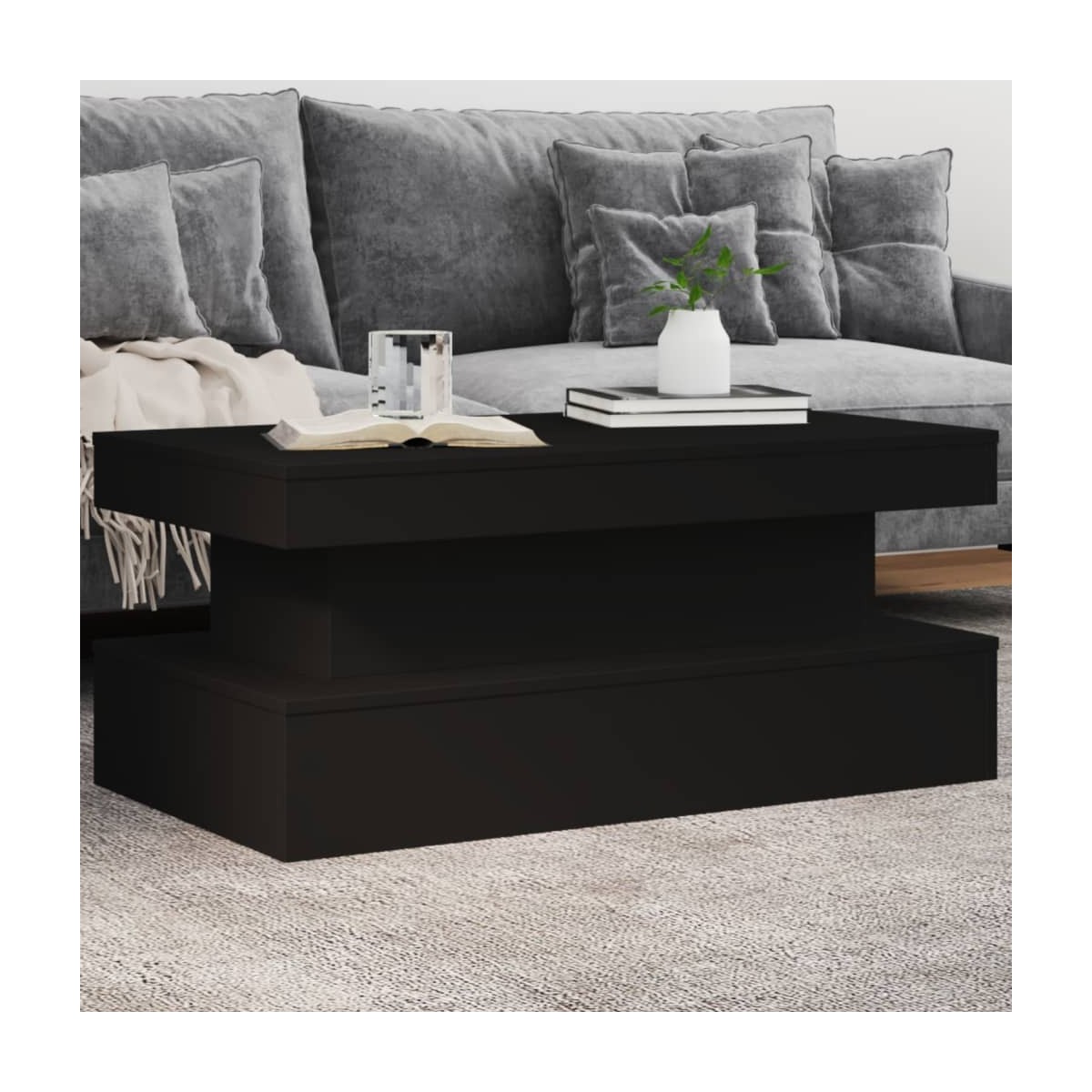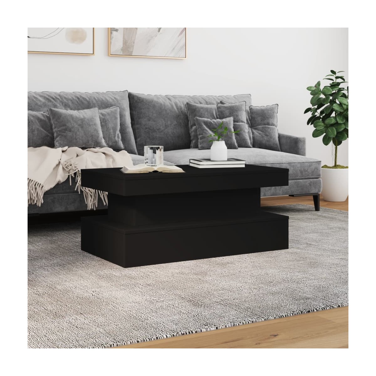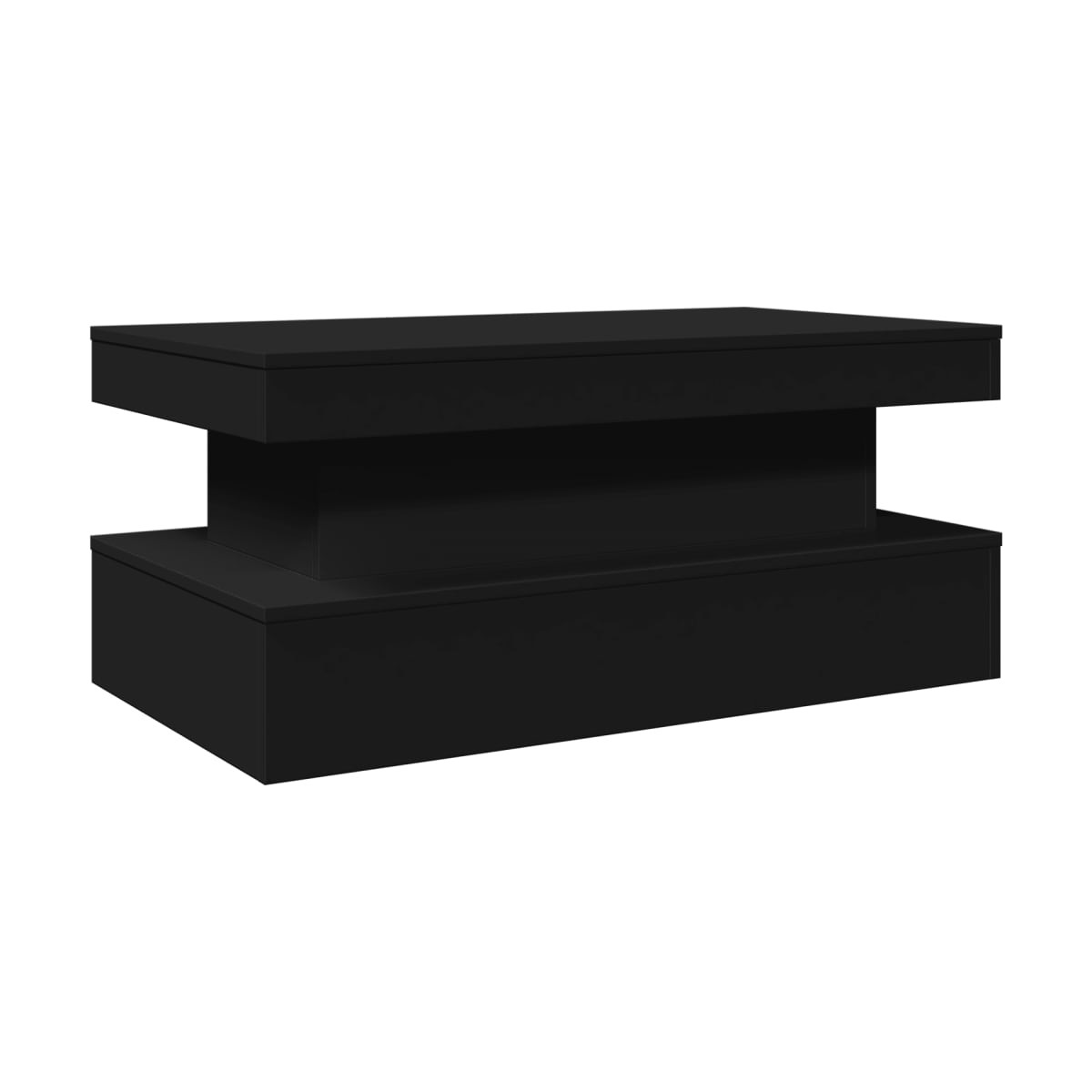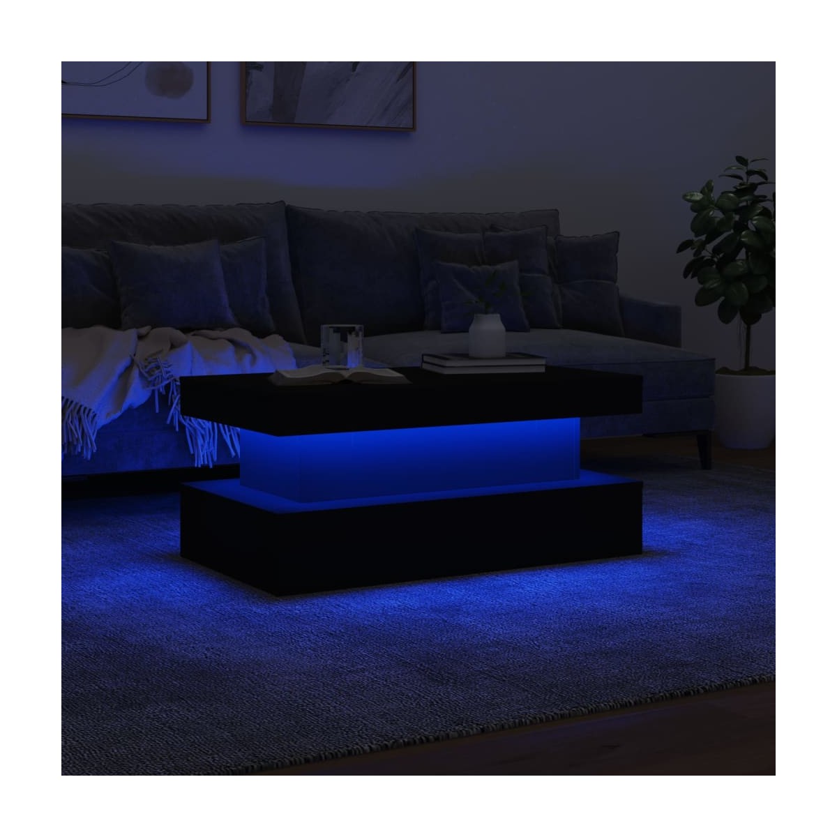 Decora el salón con esta moderna mesa de centro con luces LED, que combina fácilmente con muebles de cualquier estilo. Material duradero: La madera de ingeniería tiene una calidad excepcional, con una superficie lisa y también cuenta con fuerza, estabilidad y resistencia a la humedad.Superficie robusta: La superficie resistente de esta mesa auxiliar proporciona una superficie segura para colocar bebidas, jarrones, fruteros o adornos.Luces LED RGB: La mesita de sofá está equipada con vibrantes luces LED RGB. Con diversos menús personalizables, puedes cambiar el color de las luces sin problemas e incluso hacer que se regulen automáticamente. Estas luces LED no sólo realzan el aspecto moderno de la mesita de centro, sino que también le dan un toque de moda.Diseño versátil: Esta mesa de sofá puede satisfacer diferentes necesidades, ya que se puede usar como mesa auxiliar, mesita o mesita de teléfono. Información útil:El producto tiene un conector USB que necesita una fuente de alimentación USB certificada de 5 V (no incluida).