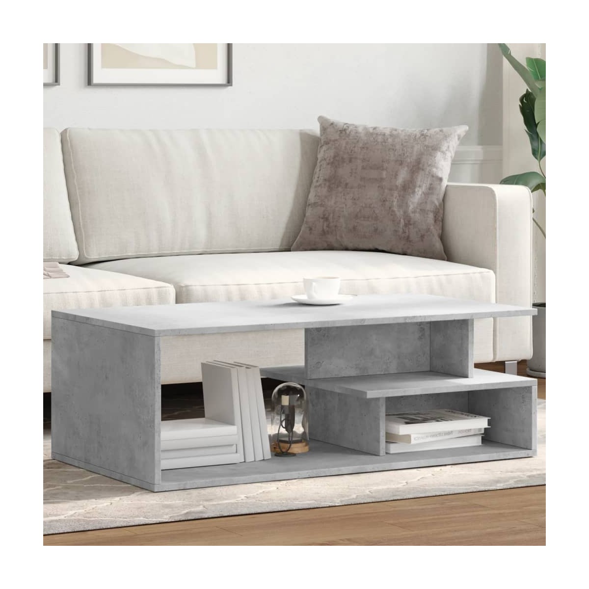 Dale un toque de elegancia a la casa con esta estilosa mesa de centro. Material estable y duradero: La madera de ingeniería es un material duradero y estable con una superficie lisa que es resistente a la humedad, la deformación y la rotura, lo que la convierte en una opción fiable para una variedad de proyectos.Amplio espacio de almacenamiento: Esta mesa auxiliar ofrece un amplio espacio de almacenamiento para mantener tus revistas, libros, DVDs, mandos a distancia y otros artículos pequeños bien organizados y al alcance.Tablero estable y resistente: El tablero robusto de la mesita del sofá es ideal para tener a mano tus bebidas o cualquier otra necesidad que necesites.Fácil de limpiar: La mesita de centro es fácil de limpiar con un paño húmedo.Diseño atemporal: Esta mesa de centro posee líneas limpias y sencillas y un look minimalista que añade un estilo moderno y atemporal a la decoración actual de la casa.