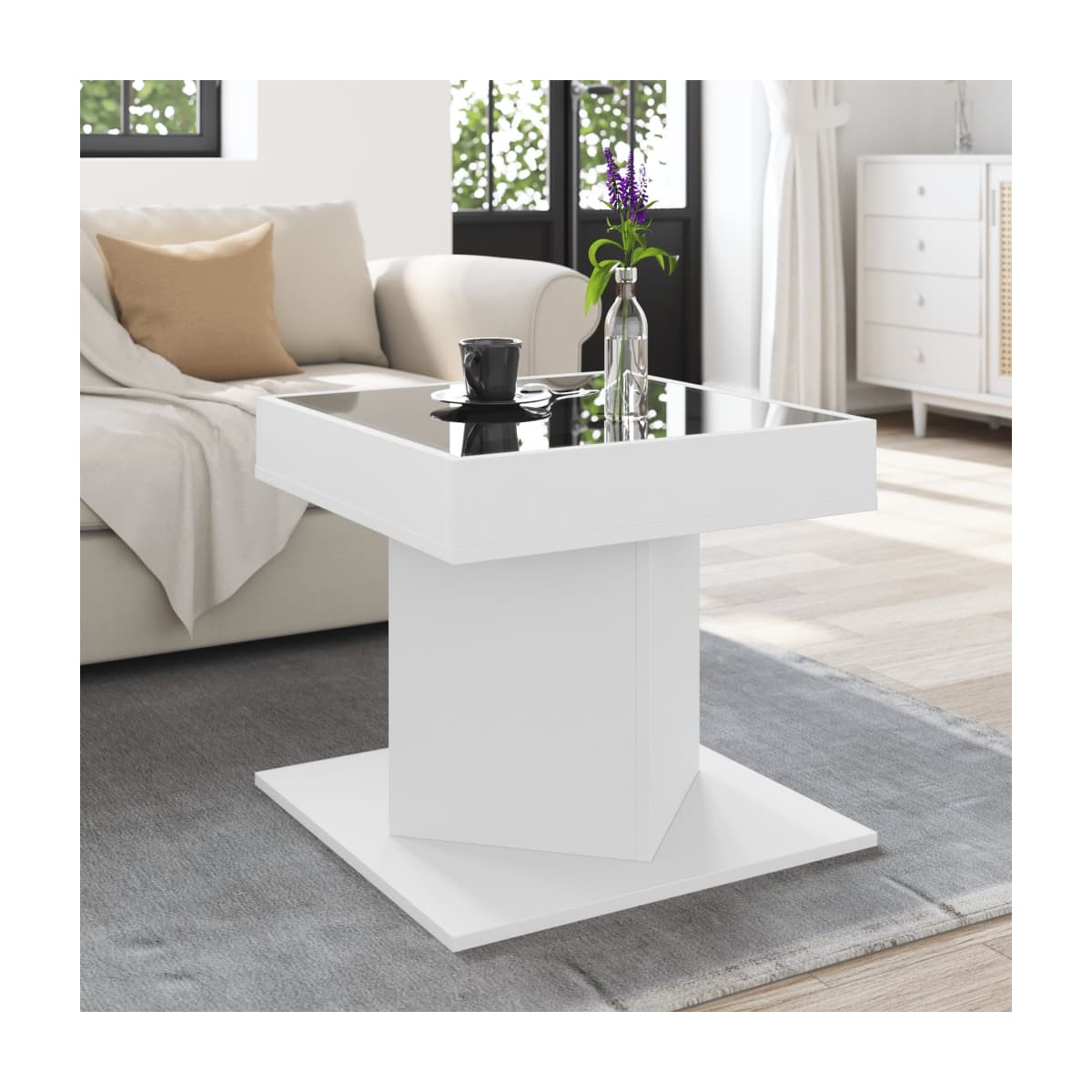 La exclusiva mesa de centro con un espejo infinito LED es adecuada para diferentes lugares. Es una mesa imprescindible para tu casa. Material estable y duradero: La madera de ingeniería es un material duradero y estable con una superficie lisa que es resistente a la humedad, la deformación y la rotura, lo que la convierte en una opción fiable para una variedad de proyectos.Luces LED RGB para un ambiente agradable: Esta mesa de centro cuenta con luces LED que pueden ajustarse fácilmente para crear un espectáculo de luces personalizado, mejorando el ambiente de tu espacio interior.Superficie resistente: La robusta superficie de la mesita de salón es perfecta para colocar bebidas, comida y otros objetos decorativos.Diversos usos: Esta mesa de centro sirve para múltiples propósitos. Puede funcionar como mesa auxiliar o mesa de sofá en tu salón o dormitorio, atendiendo a tus necesidades específicas. Información útil:El producto tiene un conector USB que necesita una fuente de alimentación USB certificada de 5 V (no incluida).