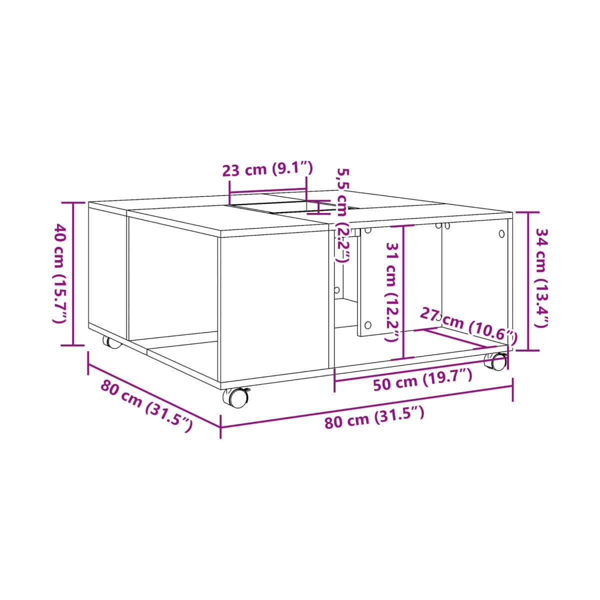 - Dimensiones: 80 x 80 x 40 cm (ancho x profundo x alto)