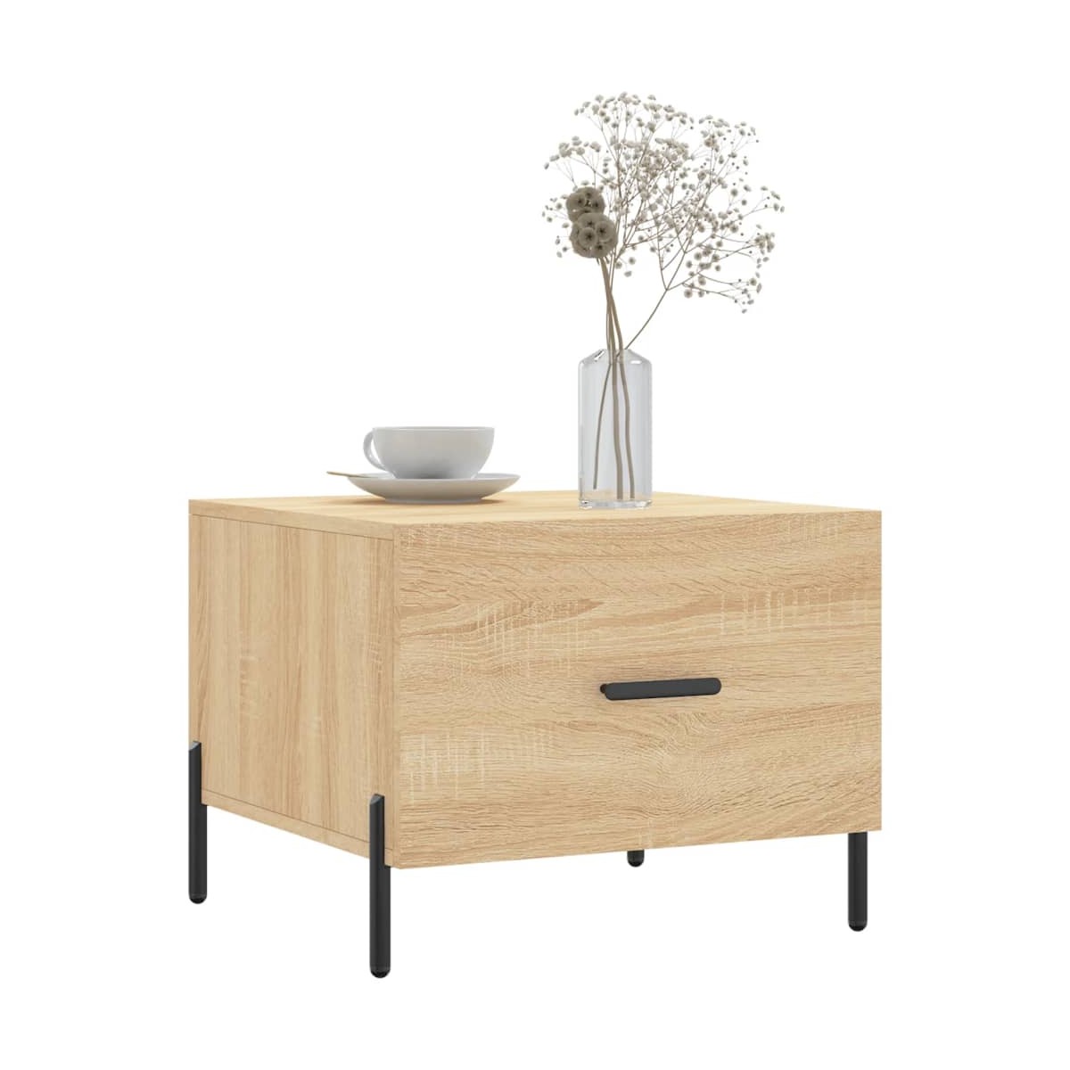 Dale un toque de elegancia a la casa con estas estilosas mesas de centro. Material duradero: La madera de ingeniería tiene una calidad excepcional, con una superficie lisa y también cuenta con fuerza, estabilidad y resistencia a la humedad.Amplio espacio de almacenaje: La mesa auxiliar tiene un cajón, que ofrece un amplio espacio de almacenaje para mantener tus cosas bien organizadas y al alcance.Superficie robusta: La robusta superficie de la mesita de sofá es perfecta para colocar bebidas, comida y otros objetos decorativos.Patas de hierro: Las patas de hierro dan un estilo tranquilo a la casa, además de garantizar la estabilidad de la mesa.