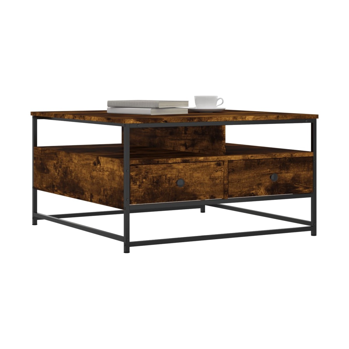 Dale un toque de elegancia a la casa con esta estilosa mesa de centro. Material duradero: La mesa auxiliar está hecha de madera de ingeniería. La madera de ingeniería tiene una calidad excepcional, con una superficie lisa, y también es fuerte, estable y resistente a la humedad.Amplio espacio de almacenamiento: Esta mesa del sofá con cajones y estantes ofrece un amplio espacio de almacenamiento para mantener tus objetos esenciales bien organizados y al alcance.Superficie stable: La estable superficie de la mesita de salón es perfecta para colocar bebidas, comida y objetos decorativos.Estructura robusta: La estructura de metal de esta mesa de sofá garantiza su solidez y estabilidad.