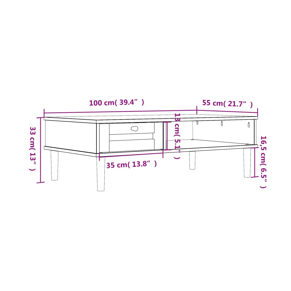 - Dimensiones: 100 x 55 x 33 cm (ancho x profundo x alto)