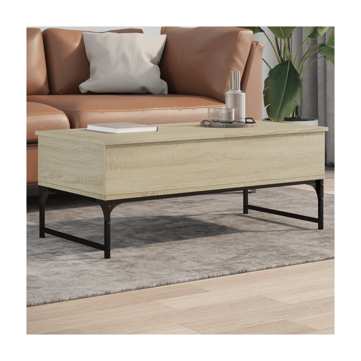 Dale un toque de elegancia a la casa con esta estilosa mesa de centro. Material duradero: La madera de ingeniería tiene una calidad excepcional, con una superficie lisa y también cuenta con fuerza, estabilidad y resistencia a la humedad.Amplio espacio de almacenamiento: La mesa del sofá tiene un amplio espacio de almacenamiento debajo con 2 compartimentos ocultos, para que puedas guardar tus artículos de uso frecuente y mantenerlos alejados del polvo.Función de visualización: El robusto tablero de la mesa del salón es perfecto para colocar tus bebidas, comida y otros artículos decorativos.Patas ajustables: La mesita de centro está equipada con 4 pies ajustables que pueden proteger el piso de arañazos y mantenerla estable en un suelo irregular.Estructura robusta: La estructura de metal de esta mesa de sofá garantiza su solidez y estabilidad.