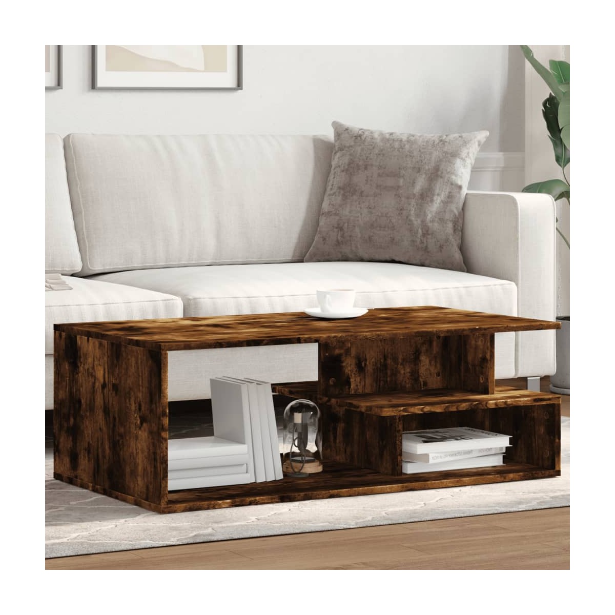 Dale un toque de elegancia a la casa con esta estilosa mesa de centro. Material estable y duradero: La madera de ingeniería es un material duradero y estable con una superficie lisa que es resistente a la humedad, la deformación y la rotura, lo que la convierte en una opción fiable para una variedad de proyectos.Amplio espacio de almacenamiento: Esta mesa auxiliar ofrece un amplio espacio de almacenamiento para mantener tus revistas, libros, DVDs, mandos a distancia y otros artículos pequeños bien organizados y al alcance.Tablero estable y resistente: El tablero robusto de la mesita del sofá es ideal para tener a mano tus bebidas o cualquier otra necesidad que necesites.Fácil de limpiar: La mesita de centro es fácil de limpiar con un paño húmedo.Diseño atemporal: Esta mesa de centro posee líneas limpias y sencillas y un look minimalista que añade un estilo moderno y atemporal a la decoración actual de la casa.