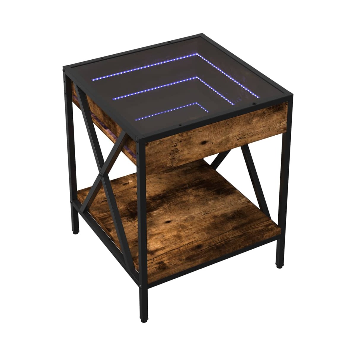La exclusiva mesa de centro con espejo LED Infinity es adecuada para diferentes lugares. Material estable y duradero: La madera de ingeniería es un material duradero y estable con una superficie lisa que es resistente a la humedad, la deformación y la rotura, lo que la convierte en una opción fiable para una variedad de proyectos.Luces LED RGB para un ambiente agradable: Esta mesa cuenta con luces LED que se pueden ajustar fácilmente para crear un espectáculo de luces personalizado. Puedes personalizar los modos, los colores y el brillo para mejorar el ambiente de tu espacio de interior.Superficie resistente: La robusta superficie de la mesita de salón es perfecta para colocar bebidas, comida y otros objetos decorativos.Diversos usos: Esta mesa de centro sirve para múltiples propósitos. Puede funcionar como mesa auxiliar o mesa de sofá en tu salón o dormitorio, atendiendo a tus necesidades específicas.Estructura resistente: Las patas metálicas añaden un estilo tranquilo a la casa a la vez que garantizan la estabilidad. Información útil:El producto tiene un conector USB que necesita una fuente de alimentación USB certificada de 5 V (no incluida).