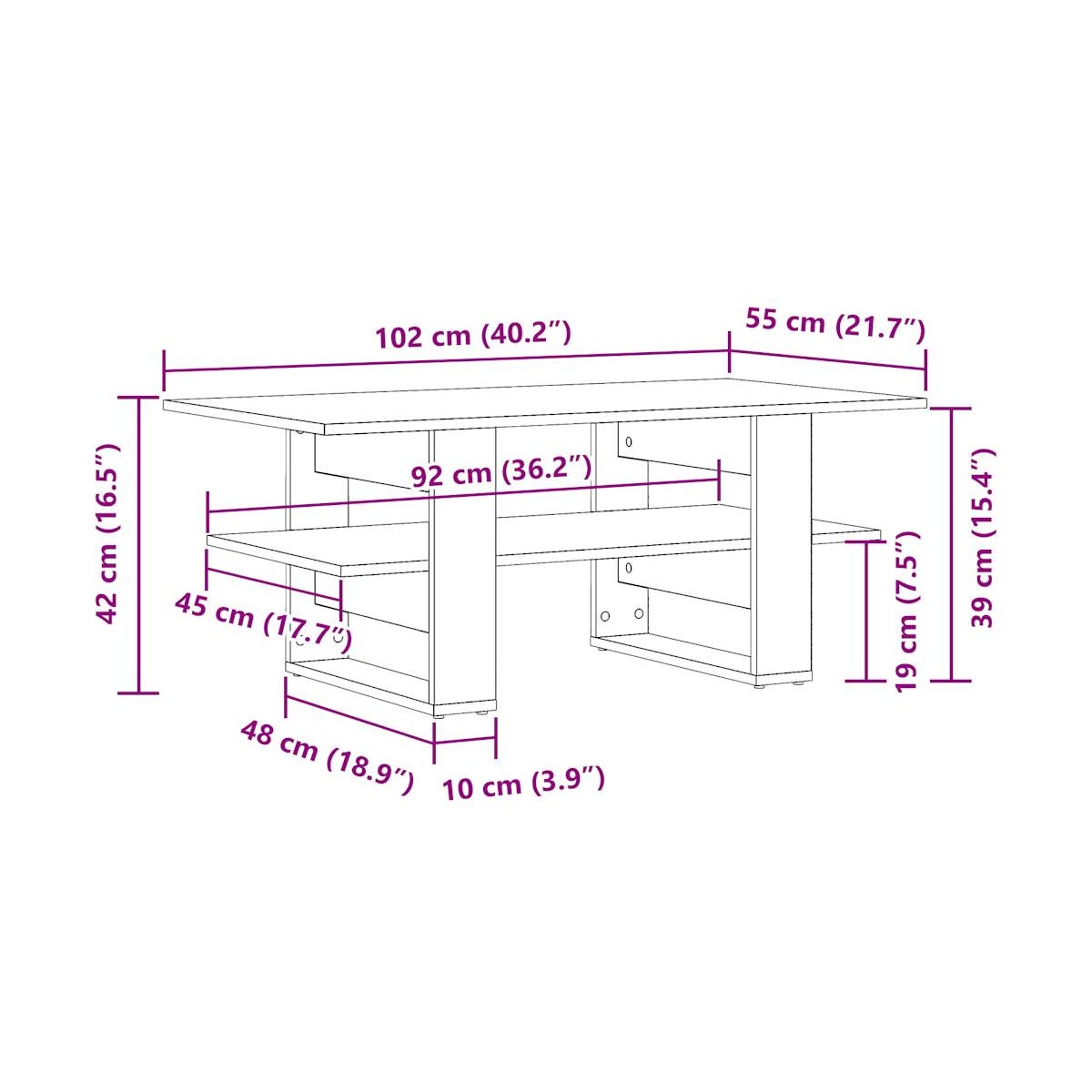 ¡Relájate y disfruta entreteniendo a tu familia y amigos alrededor de esta mesa de centro! Material estable y duradero: La madera de ingeniería es un material duradero y estable con una superficie lisa que es resistente a la humedad, la deformación y la rotura, lo que la convierte en una opción fiable para una variedad de proyectos. Amplio espacio de almacenaje: La mesa auxiliar con estante ofrece un amplio espacio de almacenaje para mantener bien organizados y al alcance revistas, libros, artículos decorativos y otros objetos de uso diario. Superficie robusta: La mesa de sofá tiene una superficie robusta, sobre la que puedes colocar comida o bebida, o exponer objetos decorativos como marcos de fotos o incluso plantas en macetas. Fácil de mantener: Gracias a su superficie lisa, la mesa se limpia fácilmente con un paño húmedo y requiere menos mantenimiento.