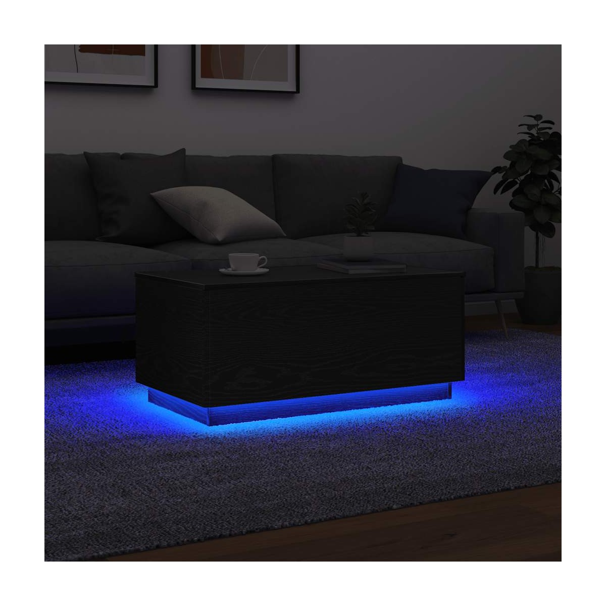 Decora el salón con esta moderna mesa de centro con luces LED, que combina fácilmente con muebles de cualquier estilo. Material duradero: La madera de ingeniería tiene una calidad excepcional, con una superficie lisa y también cuenta con fuerza, estabilidad y resistencia a la humedad.Superficie robusta: La superficie resistente de esta mesa auxiliar proporciona una superficie segura para colocar bebidas, jarrones, fruteros o adornos.Luces LED RGB: La mesita de sofá está equipada con vibrantes luces LED RGB. Con diversos menús personalizables, puedes cambiar el color de las luces sin problemas e incluso hacer que se regulen automáticamente. Estas luces LED no sólo realzan el aspecto moderno de la mesita de centro, sino que también le dan un toque de moda.Diseño versátil: Esta mesa de sofá puede satisfacer diferentes necesidades, ya que se puede usar como mesa auxiliar, mesita o mesita de teléfono. Información útil:El producto tiene un conector USB que necesita una fuente de alimentación USB certificada de 5 V (no incluida).