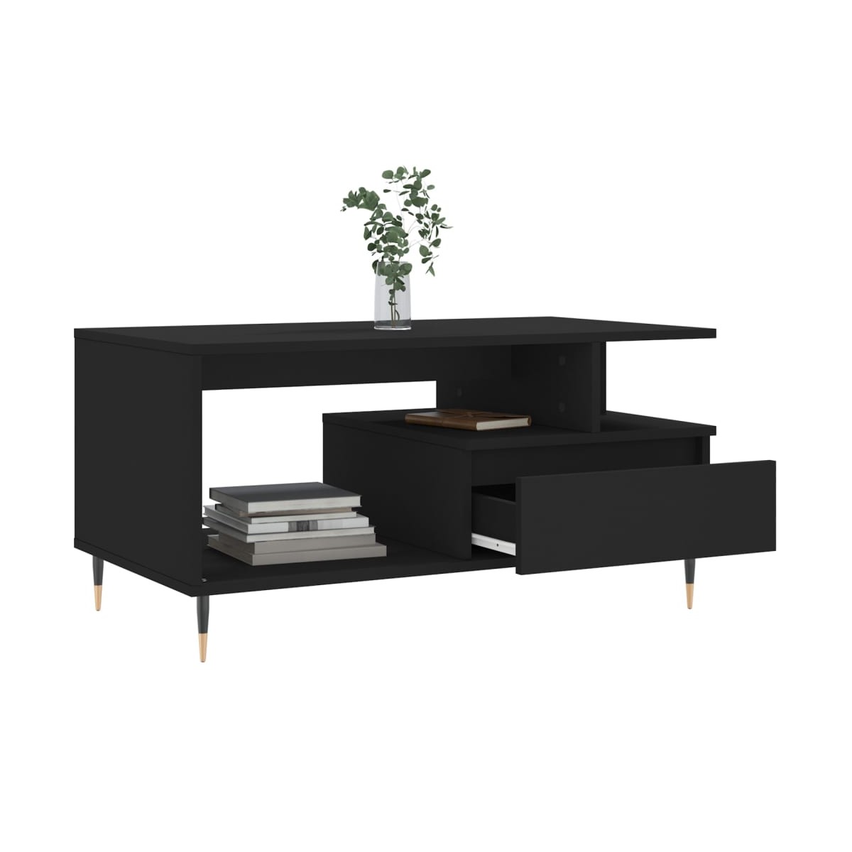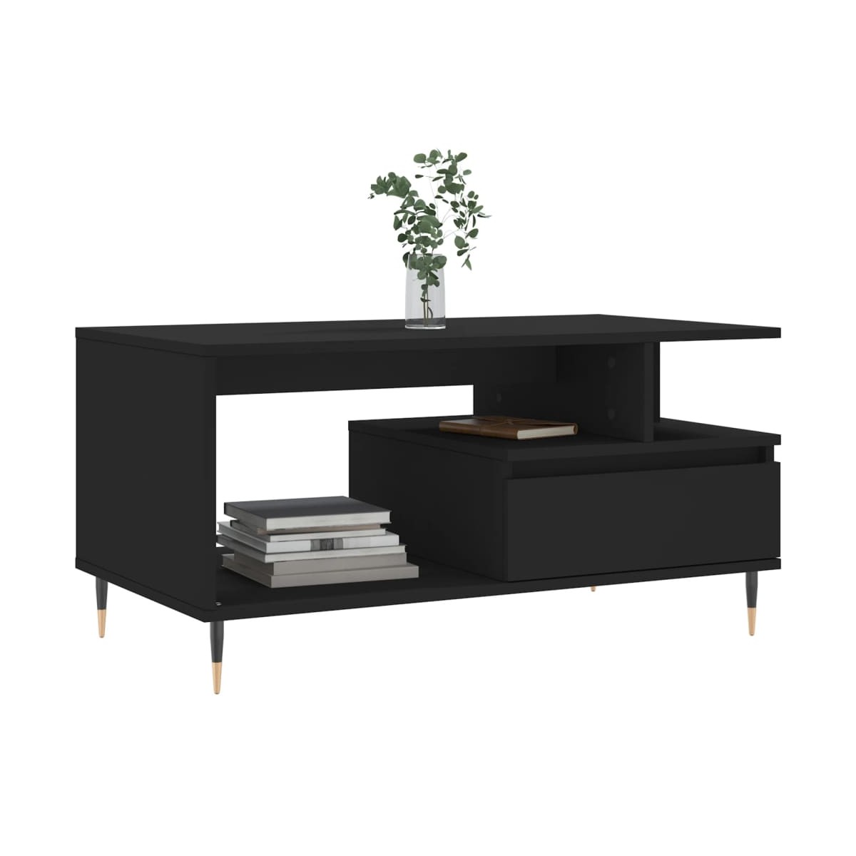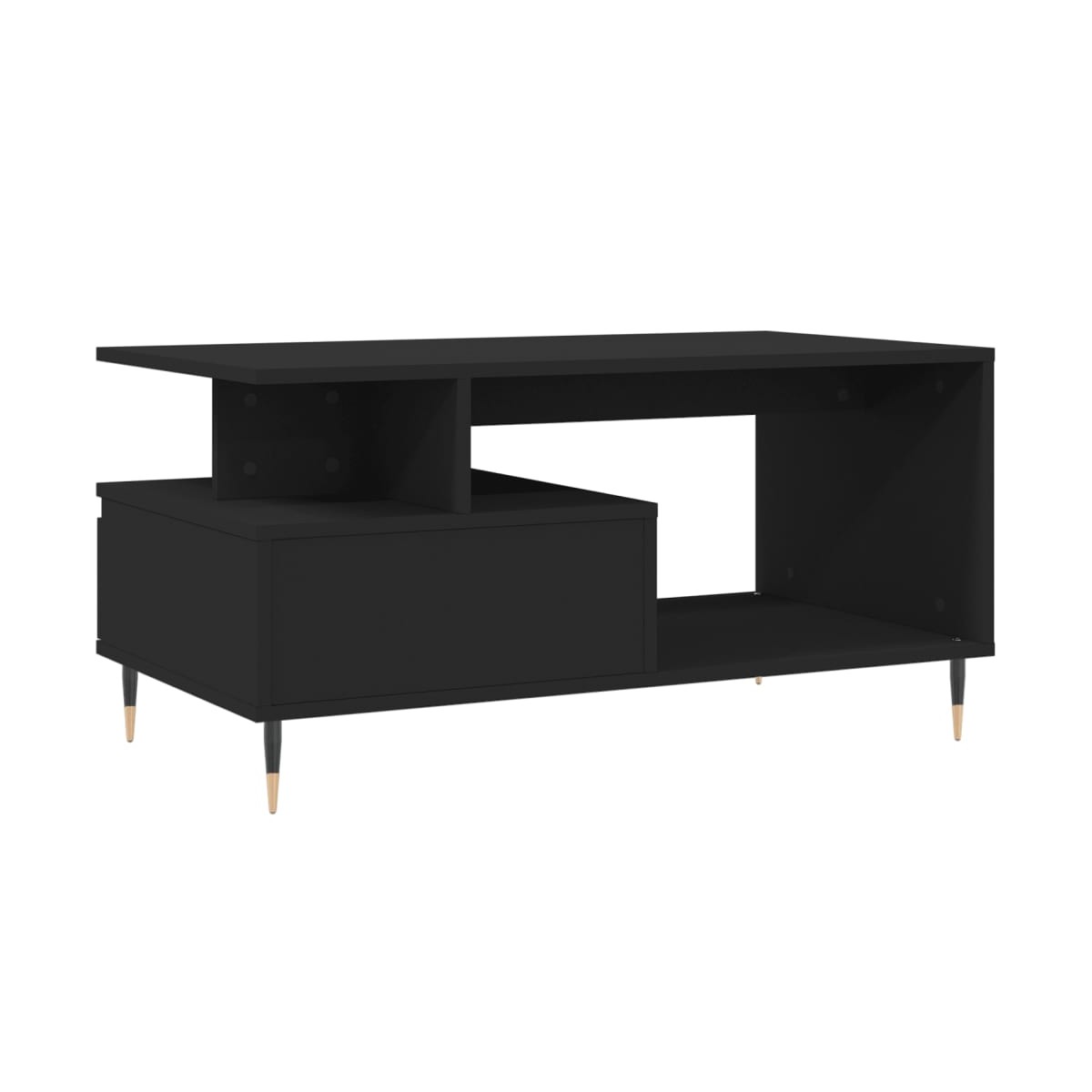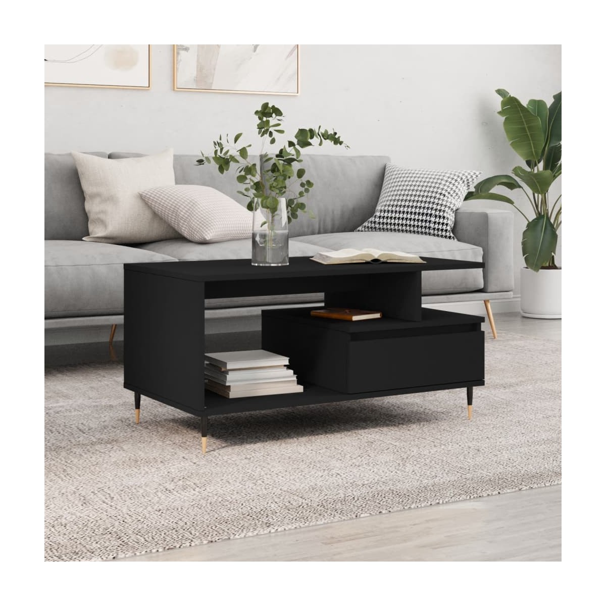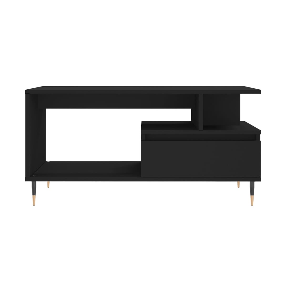 Dale un toque de elegancia a la casa con esta estilosa mesa de centro. Material duradero: La madera contrachapada tiene una calidad excepcional, con una superficie lisa y también cuenta con fuerza, estabilidad y resistencia a la humedad. Hecha de madera tecnológica, la mesa auxiliar es fácil de limpiar con un paño húmedo.Amplio espacio de almacenaje: Esta mesa de sofá con cajón ofrece un amplio espacio de almacenaje para mantener tus cosas bien organizadas y al alcance de la mano.Superficie resistente: La robusta superficie es perfecta para colocar bebidas, comida y artículos decorativos.Patas de metal: Las patas de metal le dan un estilo moderno y tranquilo a la casa mientras garantizan su estabilidad.