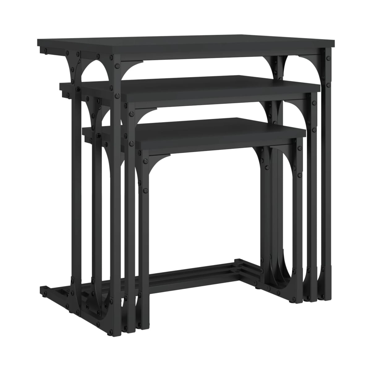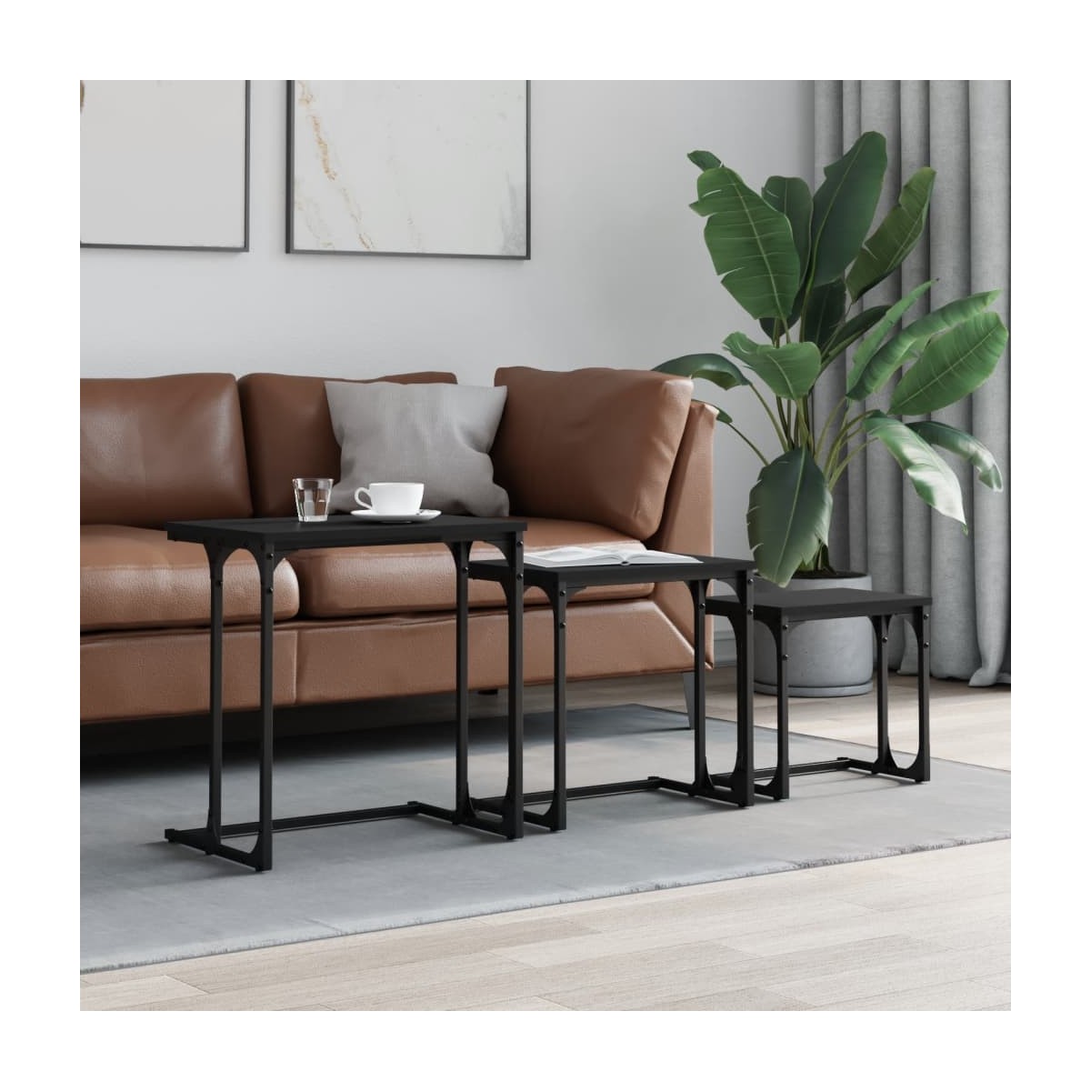 Estas 3 mesas de centro apilables son la alternativa perfecta para pisos pequeños o cualquier zona con espacio limitado. Su diseño industrial hace que este juego de mesas de centro sea un complemento elegante para tu salón, dormitorio u oficina. Material duradero: La madera contrachapada tiene una calidad excepcional, con una superficie lisa y también cuenta con fuerza, estabilidad y resistencia a la humedad. Hechas de madera contrachapada, las mesas apilables son fáciles de limpiar.Diseño apilable: El juego de mesas de centro apilables tiene diferentes tamaños para satisfacer tus diferentes necesidades. Las mesas más pequeñas pueden encajar dentro de la mesa de centro más grande si necesitas más espacio. Y puedes organizarlas por separado para obtener el máximo espacio en la mesa.Superficie resistente: La resistente superficie de las mesas apilables es ideal para dejar las bebidas o cualquier otra cosa que necesites tener al alcance de la mano.Función versátil: Las mesas auxiliares apilables son versátiles. Cualquiera de ellas se puede usar como mesita de noche en el dormitorio, mesa auxiliar o mesita de sofá en el salón y la oficina.Estructura metálica: La estructura metálica añade un estilo industrial a la casa, además de garantizar su durabilidad y estabilidad.