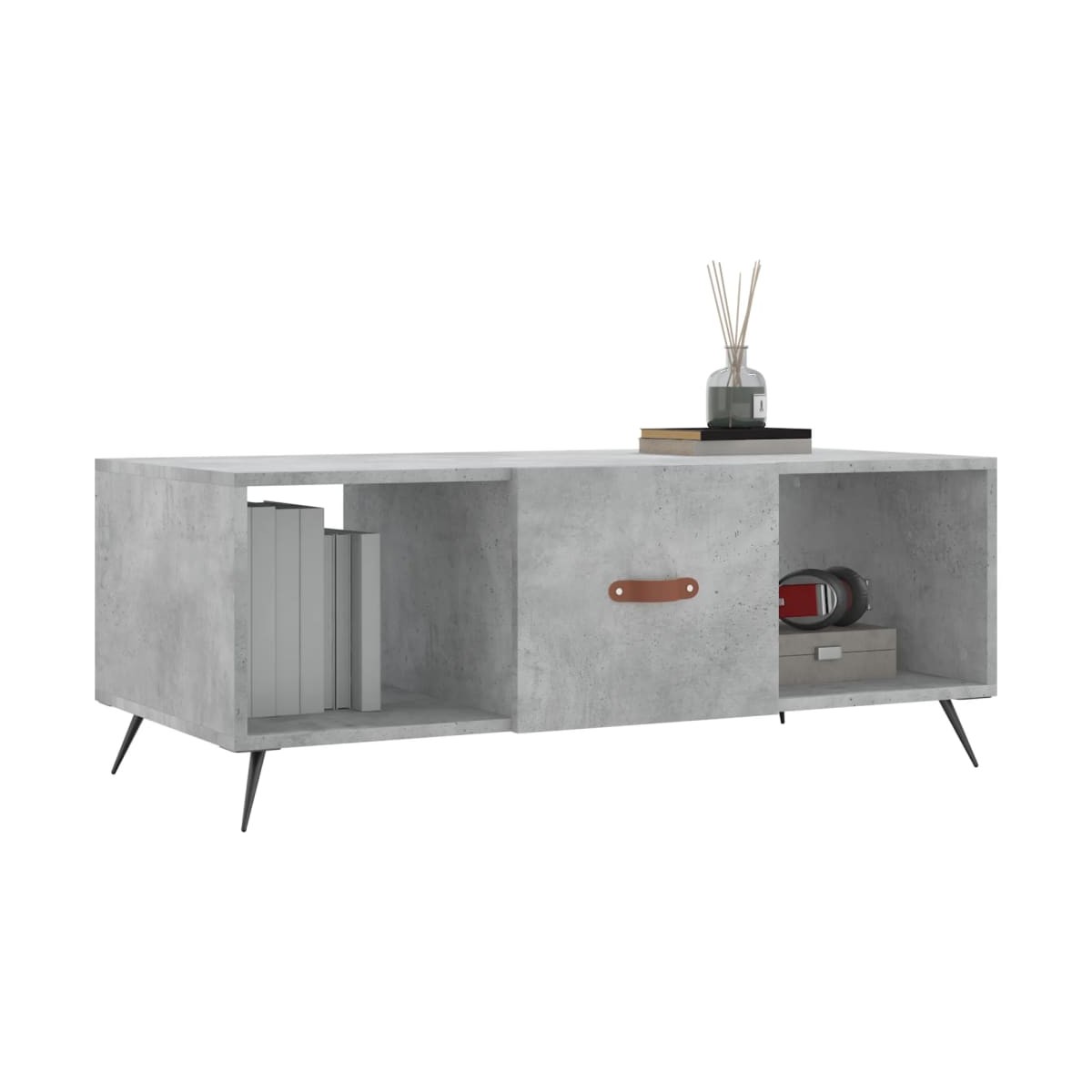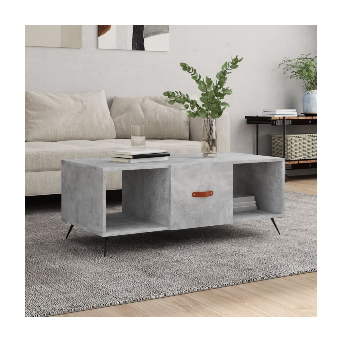 Dale un toque de elegancia a la casa con esta estilosa mesa de centro. Material duradero: La madera contrachapada tiene una calidad excepcional, con una superficie lisa y también cuenta con fuerza, estabilidad y resistencia a la humedad.Amplio espacio de almacenaje: Esta mesita auxiliar tiene 3 compartimentos, por lo que ofrece un amplio espacio de almacenamiento para mantener tus cosas del día a día bien organizadas y al alcance.Superficie robusta: La robusta superficie de la mesita de sofá es perfecta para colocar bebidas, comida y otros objetos decorativos.Puerta práctica: Mantén ordenada la casa al esconder pequeños objetos esenciales detrás de la puerta de la mesita de salón.Patas de hierro: Las patas de hierro dan un estilo tranquilo a la casa, además de garantizar la estabilidad de la mesa.