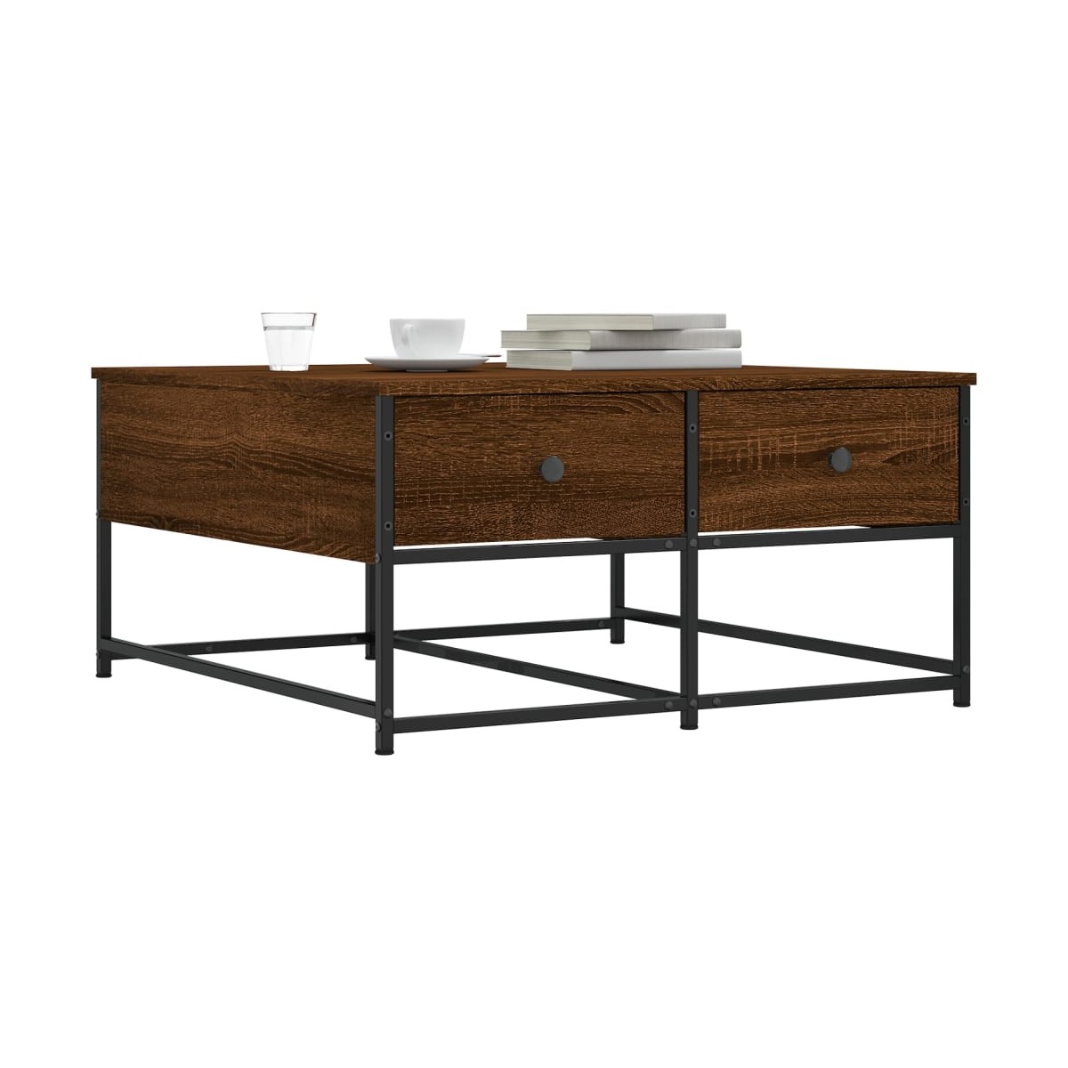 Dale un toque de elegancia a la casa con esta estilosa mesa de centro. Material duradero: La mesa auxiliar está hecha de madera de ingeniería. La madera de ingeniería tiene una calidad excepcional, con una superficie lisa, y también es fuerte, estable y resistente a la humedad.Amplio espacio de almacenaje: Esta mesa de sofá con 2 cajones ofrece un amplio espacio de almacenaje para mantener tus cosas bien organizadas y al alcance de la mano.Superficie estable: La estable superficie de la mesita de salón es perfecta para colocar bebidas, comida y objetos decorativos.Estructura robusta: La estructura de metal de esta mesa de sofá garantiza su solidez y estabilidad.