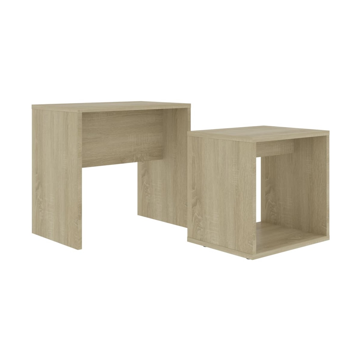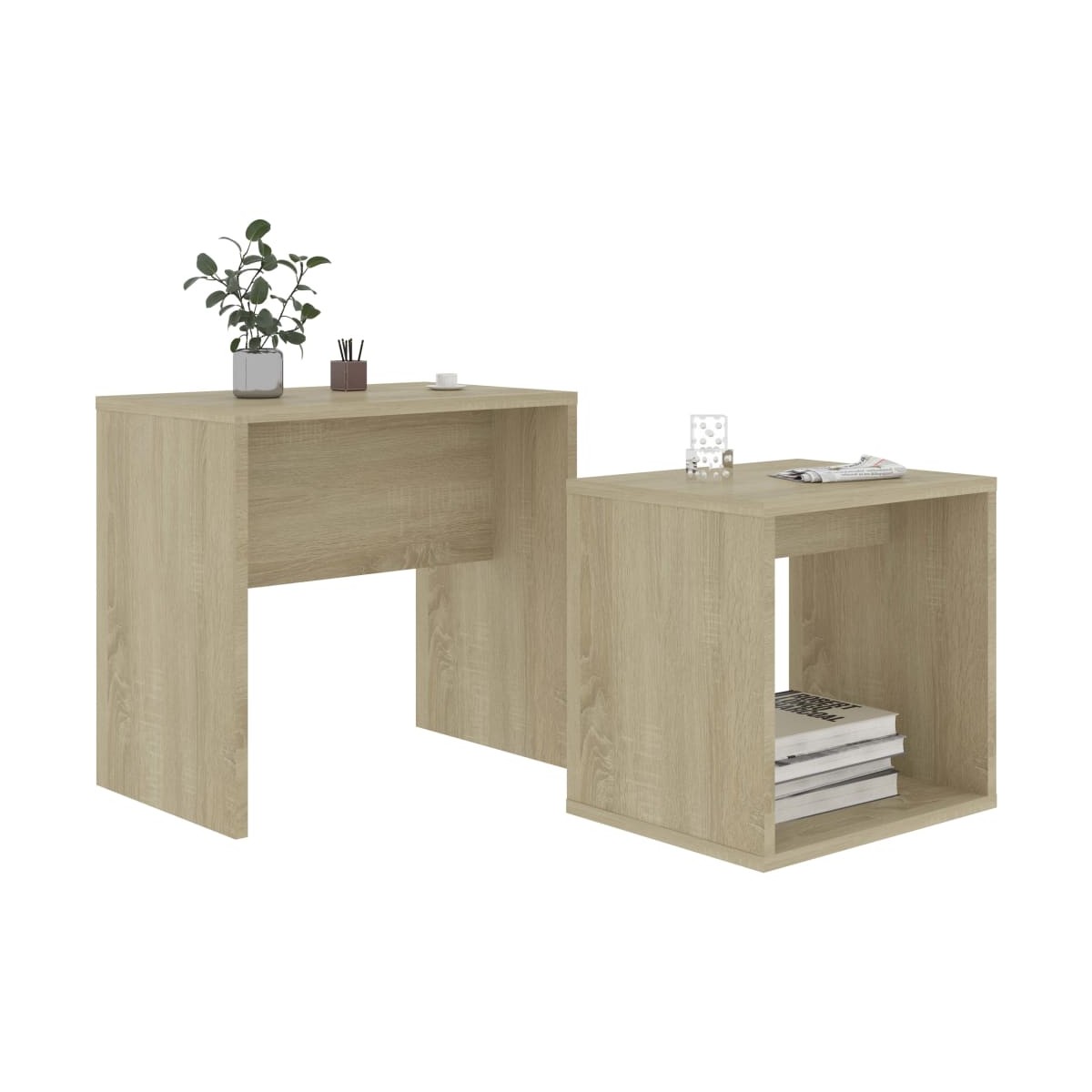 Nuestro juego de 2 mesas de centro es la alternativa para pisos pequeños o cualquier zona con espacio limitado. Su diseño contemporáneo convierte este set de mesas apilables en un aporte elegante para tu salón, dormitorio u oficina. El conjunto de mesas auxiliares está hecho de madera contrachapada de calidad, por lo que es robusto y estable. Las mesas apilables son multiusos. Pueden usarse en el salón como superficie práctica para colocar bebidas u otros elementos que necesites cerca. La mesa de centro pequeña, con un diseño de estante, te ofrece un plus de espacio para guardar revistas, DVD u otros objetos. Este conjunto ahorra espacio ya que la mesa pequeña puede esconderse debajo de la grande cuando no se use. ¡También puedes utilizar una de ellas en tu dormitorio como una exclusiva mesita de noche! El juego de mesas de centro es fácil de limpiar con un paño húmedo. Este conjunto de mesas apilables también es fácil de montar.