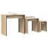 Estas 3 mesas de centro apilables son la alternativa perfecta para pisos pequeños o cualquier zona con espacio limitado. Su diseño industrial hace que este juego de mesas de centro sea un complemento elegante para tu salón, dormitorio u oficina. Material duradero: La madera contrachapada tiene una calidad excepcional, con una superficie lisa y también cuenta con fuerza, estabilidad y resistencia a la humedad. Hechas de madera contrachapada, las mesas apilables son fáciles de limpiar.Diseño apilable: El juego de mesas de centro apilables tiene diferentes tamaños para satisfacer tus diferentes necesidades. Las mesas más pequeñas pueden encajar dentro de la mesa de centro más grande si necesitas más espacio. Y puedes organizarlas por separado para obtener el máximo espacio en la mesa.Superficie resistente: La resistente superficie de las mesas apilables es ideal para dejar las bebidas o cualquier otra cosa que necesites tener al alcance de la mano.Función versátil: Las mesas auxiliares apilables son versátiles. Cualquiera de ellas se puede usar como mesita de noche en el dormitorio, mesa auxiliar o mesita de sofá en el salón y la oficina.Estructura metálica: La estructura metálica añade un estilo industrial a la casa, además de garantizar su durabilidad y estabilidad.