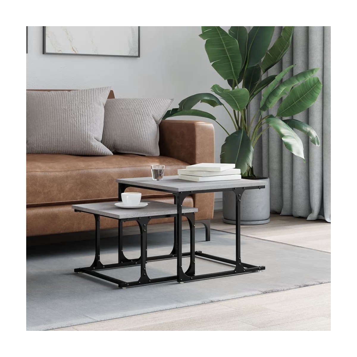 Las 2 mesas de centro apilables son la alternativa perfecta para pisos pequeños o cualquier zona con espacio limitado. Su diseño industrial convierte a este juego de mesas de centro en un aporte elegante para el salón, el dormitorio o la oficina. Material duradero: Las mesas apilables están hechas de madera de ingeniería, con una calidad excepcional y superficie lisa, además de ser fuerte, estable y resistente a la humedad.Diseño apilable: Las mesitas apilables tienen diferentes tamaños para satisfacer diferentes necesidades. La mesa más pequeña cabe dentro de la más grande si necesitas más espacio. Asimismo, puedes separarlas para ampliar la superficie.Función versátil: Las mesas auxiliares apilables son versátiles. Cualquiera de ellas se puede usar como mesita de noche en el dormitorio, mesa auxiliar o mesita de sofá en el salón y la oficina.Superficie resistente: La resistente superficie de las mesas apilables es ideal para dejar las bebidas o cualquier otra cosa que necesites tener al alcance de la mano.