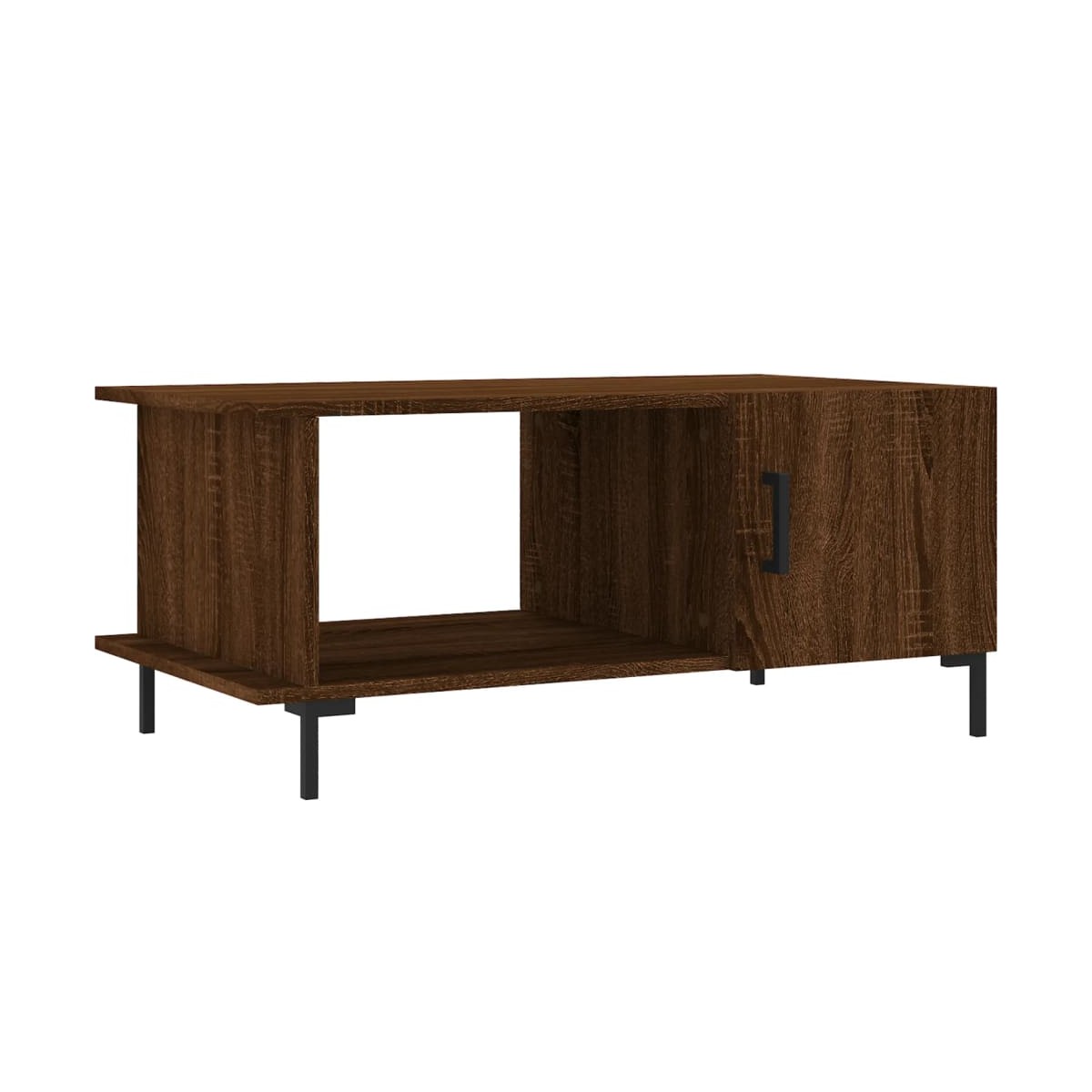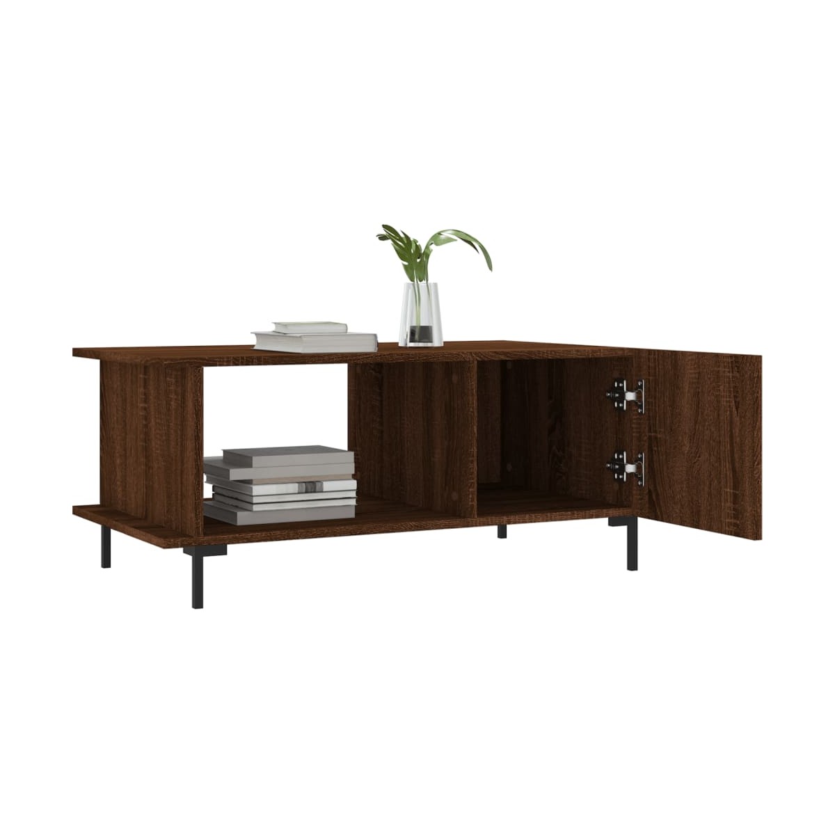 Dale un toque de elegancia a la casa con esta estilosa mesa de centro. Material duradero: La madera contrachapada tiene una calidad excepcional, con una superficie lisa y también cuenta con fuerza, estabilidad y resistencia a la humedad.Amplio espacio de almacenaje: Esta mesita auxiliar tiene 2 compartimentos, por lo que ofrece un amplio espacio de almacenamiento para mantener tus cosas del día a día bien organizadas y al alcance.Superficie robusta: La robusta superficie de la mesita de sofá es perfecta para colocar bebidas, comida y otros objetos decorativos.Puerta práctica: Mantén ordenada la casa al esconder pequeños objetos esenciales detrás de la puerta de la mesita de salón.Patas de hierro: Las patas de hierro dan un estilo tranquilo a la casa, además de garantizar la estabilidad de la mesa.