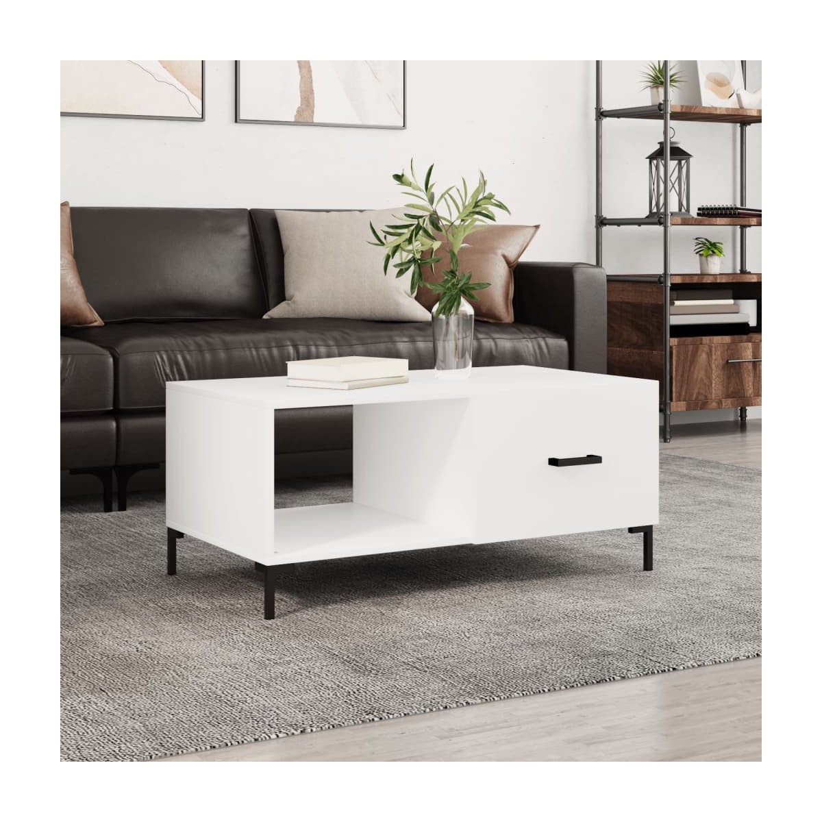 Dale un toque de elegancia a la casa con esta estilosa mesa de centro. Material duradero: La madera contrachapada tiene una calidad excepcional, con una superficie lisa y también cuenta con fuerza, estabilidad y resistencia a la humedad.Amplio espacio de almacenaje: Esta mesa auxiliar ofrece un amplio espacio de almacenaje para mantener tus cosas bien organizadas y al alcance de la mano.Superficie robusta: La robusta superficie de la mesita de sofá es perfecta para colocar bebidas, comida y otros objetos decorativos.Puerta práctica: Mantén ordenada la casa al esconder pequeños objetos esenciales detrás de la puerta de la mesita de salón.Patas de hierro: Las patas de hierro dan un estilo tranquilo a la casa, además de garantizar la estabilidad de la mesa.