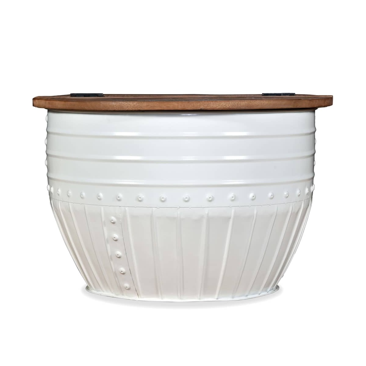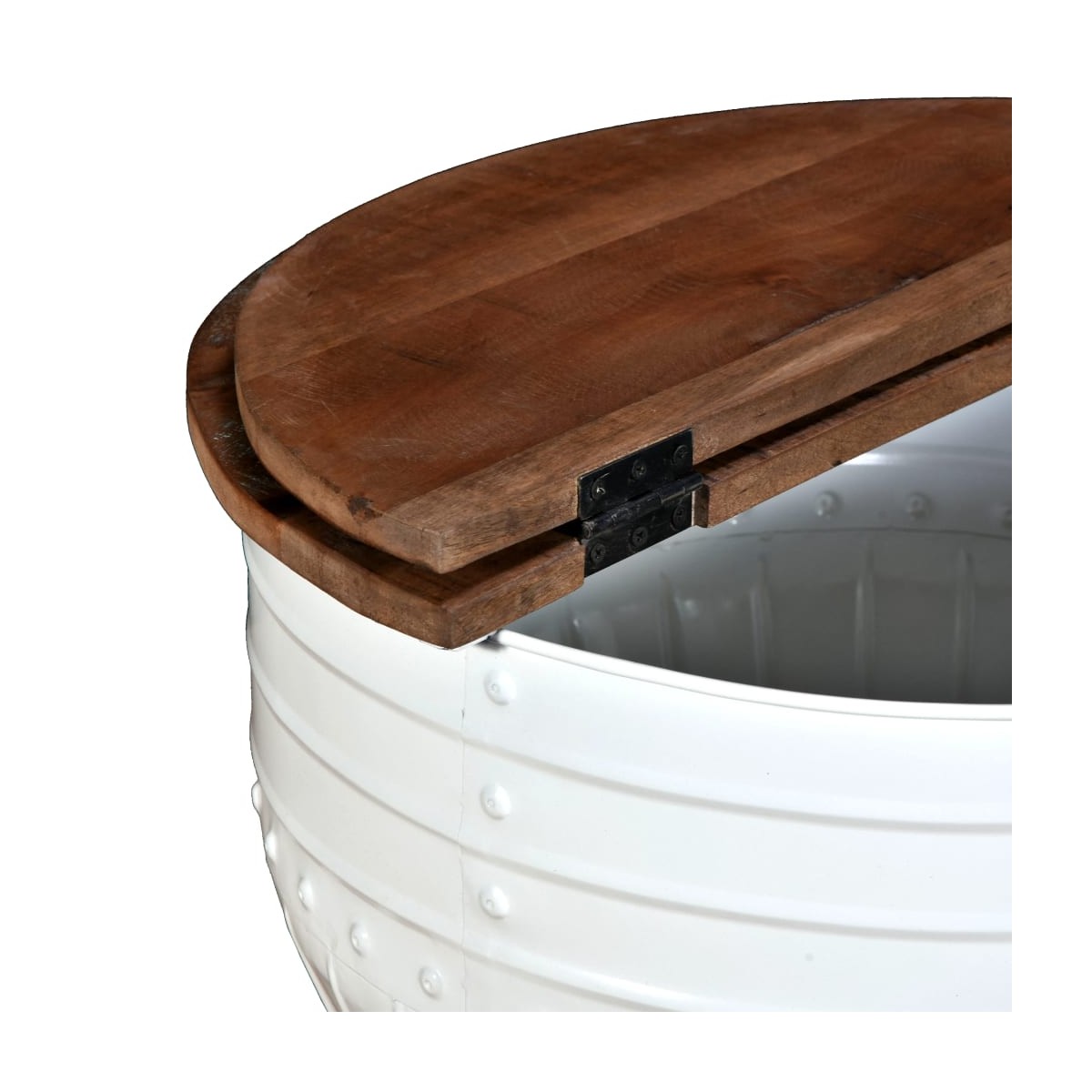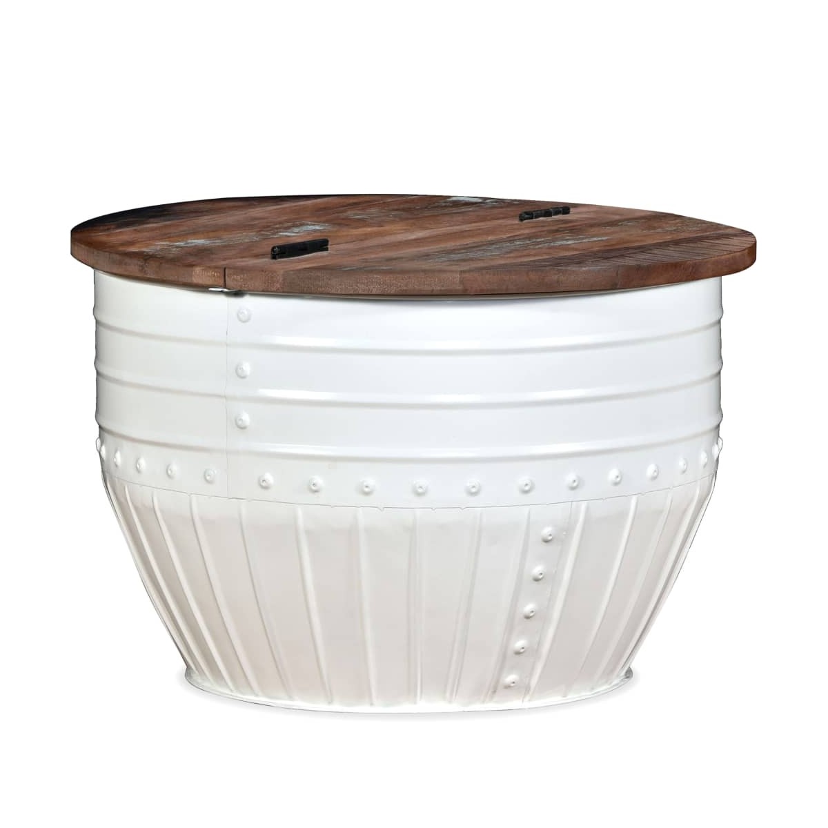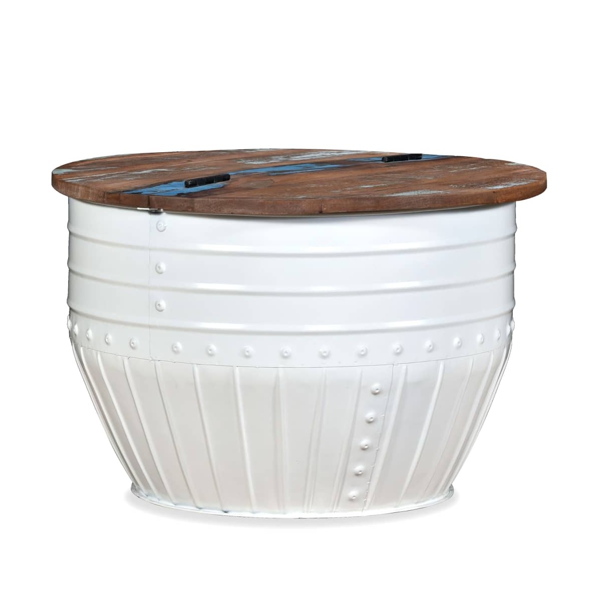 Esta mesa de centro de madera única e industrial será un aporte atemporal para tu hogar. Su exclusiva base en forma de barril proporciona a la mesa un toque industrial. Esta mesita auxiliar tiene una superficie de madera maciza, ideal para colocar vasos, jarrones, frutas u adornos, mientras que el compartimento de almacenaje oculto debajo de la superficie proporciona espacio extra para mantener el desorden a raya. La superficie está hecha de madera maciza reciclada, lo que significa que cada mesa es única y ligeramente diferente a la anterior. Presenta características de diferentes maderas, como teca, acacia, madera de mango, etc. La madera reciclada es sólida, estable, duradera y bonita. La mesa de centro se ha sometido a un elaborado proceso de pulido, pintado y lacado. ¡Relájate y disfruta con tu familia y amigos alrededor de esta exclusiva mesa de centro! Nota: El artículo ya viene montado; no necesita montaje. Los colores de la superficie pueden variar de una mesa a otra, por lo que cada una de nuestras mesas de centro es única; la entrega es aleatoria.