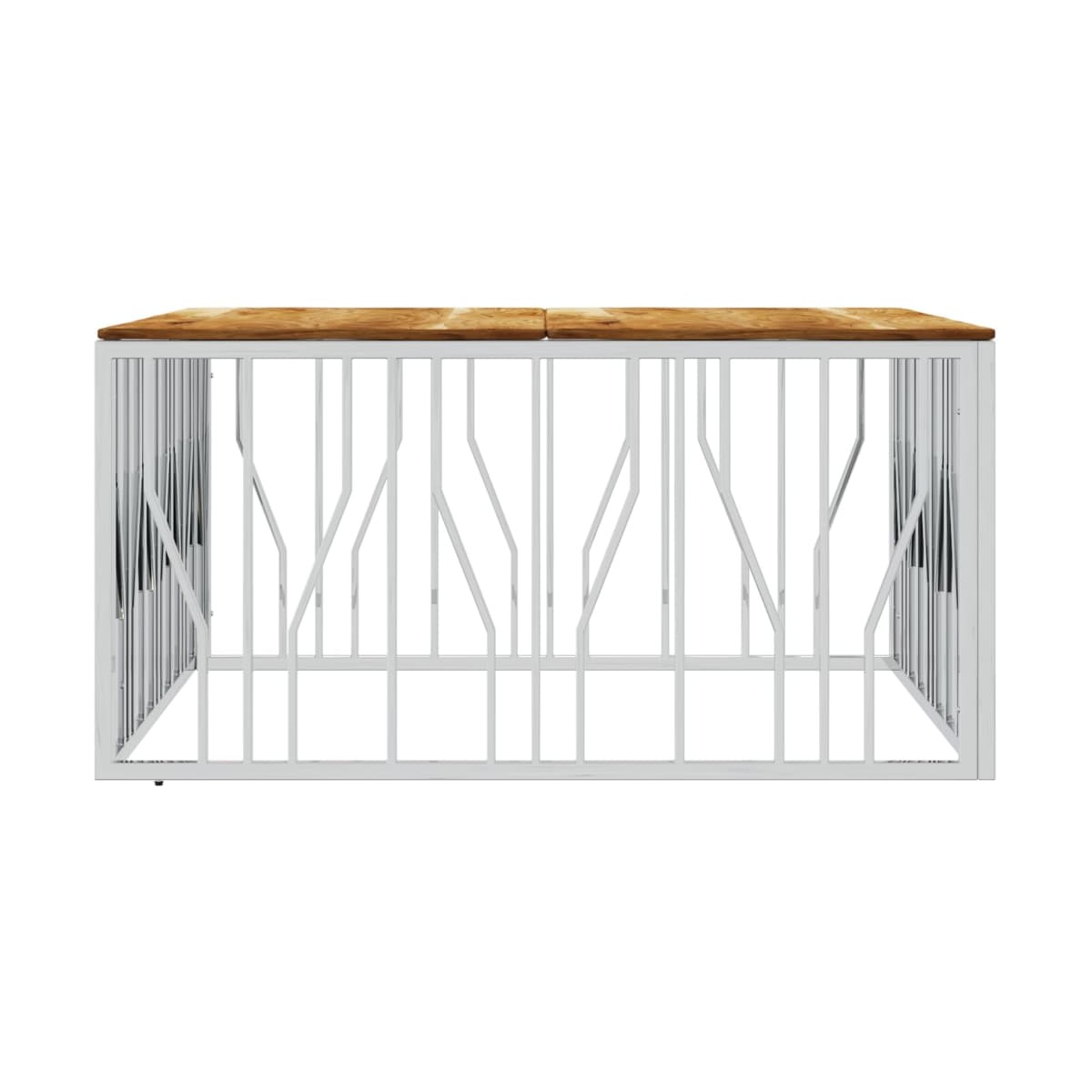Funcional y bonita, esta mesa de centro se convertirá en el centro de atención de la estancia. Estructura robusta y estable: Esta mesa de sofá tiene una estructura de acero inoxidable que es robusto, estable y resistente a la corrosión y el óxido.Material de primera calidad: La madera maciza de acacia es un bonito material natural. La madera de acacia es una madera dura tropical, densa, robusta y duradera.Tablero resistente: El tablero ofrece una superficie amplia para colocar refrigerios, bebidas, jarrones, fruteros u otros artículos decorativos.Diseño moderno: La mesa de centro tiene un diseño sencillo y moderno que complementa la decoración de cualquier salón.Fácil mantenimiento: La mesa de centro con superficie resistente a las manchas es fácil de limpiar y puedes mantener la mesa con el mejor aspecto sin esfuerzo.