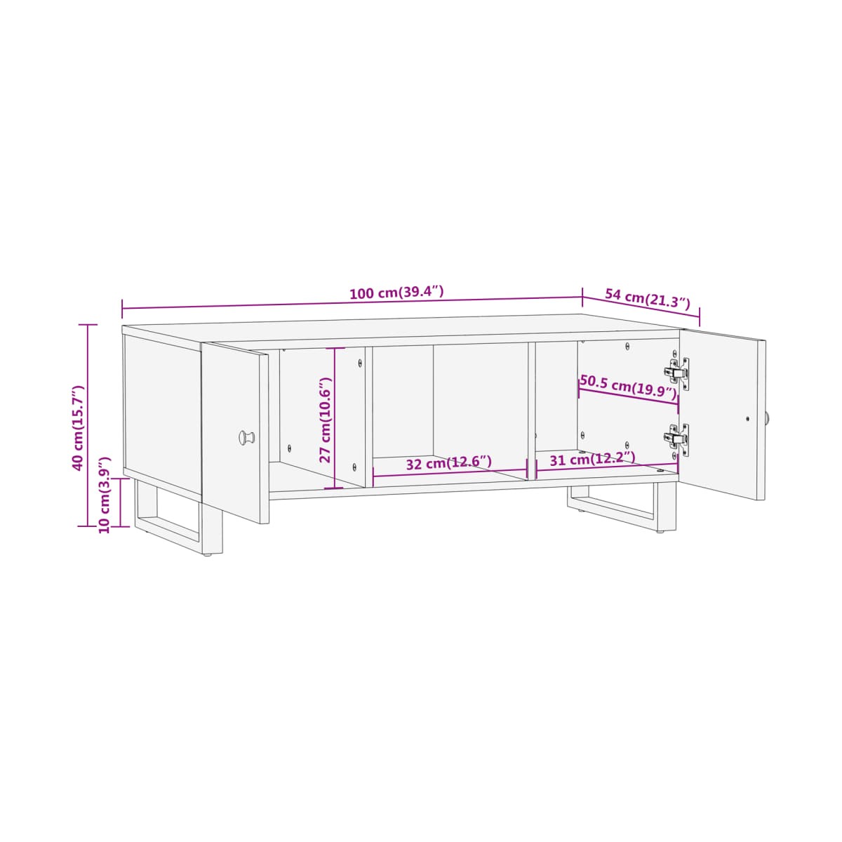- Dimensiones: 100 x 54 x 40 cm (ancho x profundo x alto)