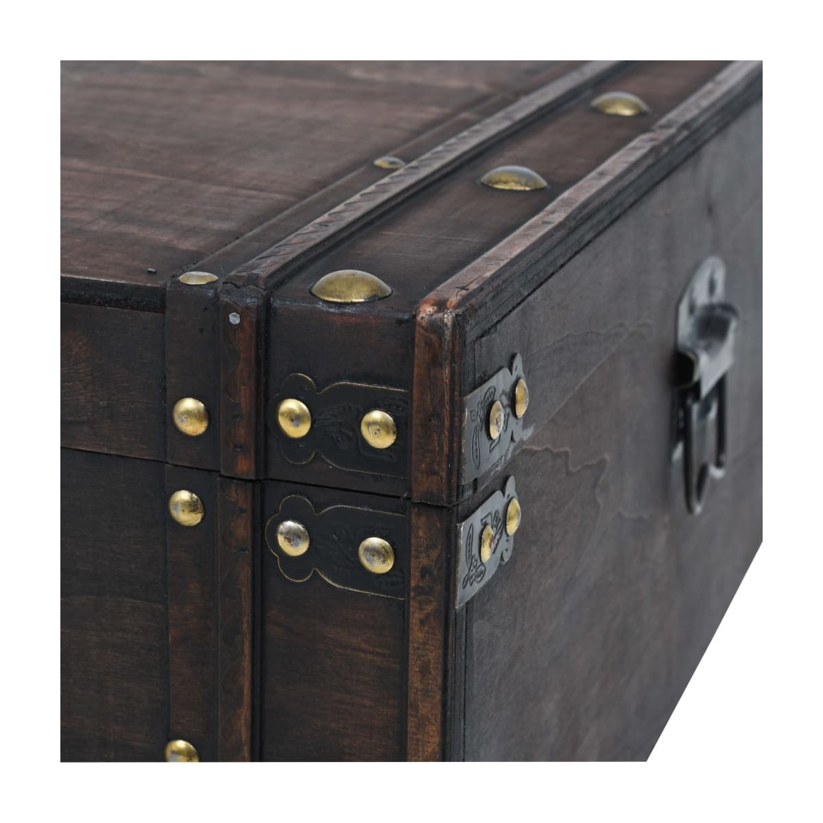 ¡Nuestra mesita de centro de madera de estilo antiguo será un aporte práctico y decorativo para tu hogar! También se puede usar como baúl de almacenamiento o banco. Esta mesa de centro está hecha de madera maciza con un color de aspecto antiguo y decorada con correas de cuero artificial y elementos metálicos, lo que le da a la mesa un encanto vintage. La mesa de centro de madera tiene un gran compartimento de almacenamiento interior para ropa, libros, revistas y cualquier otra cosa que quiera tener a su alcance, pero fuera de la vista. Gracias al pestillo y a las asas de estilo vintage, la mesa de centro es fácil de cerrar y de mover. El montaje es fácil.