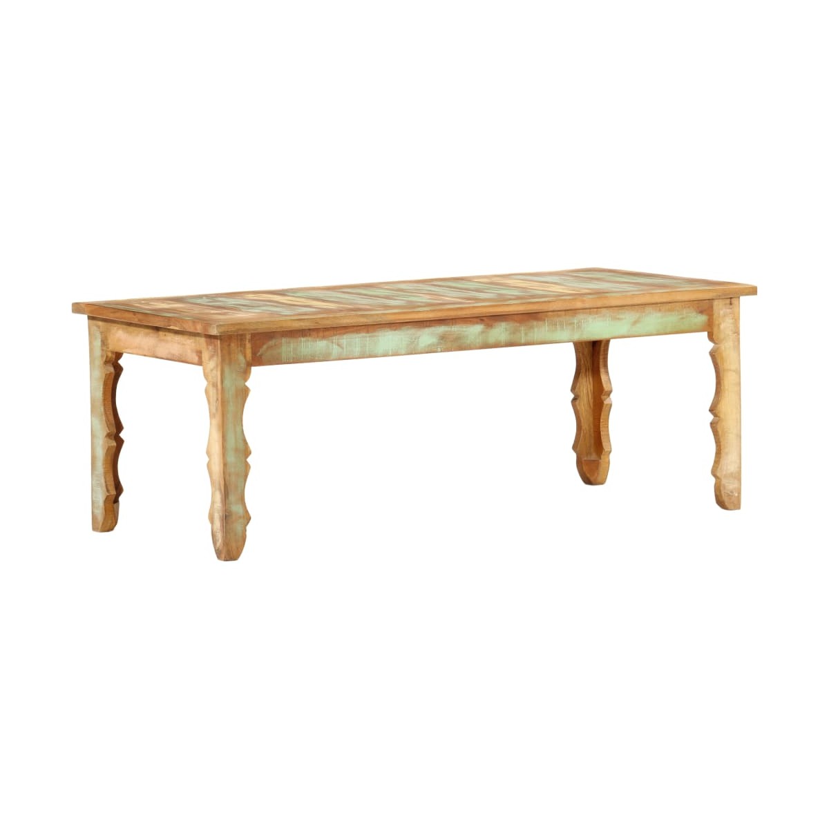 Esta mesa de centro de madera de estilo antiguo será un accesorio atemporal para tu casa. La parte superior de madera proporciona una superficie estable y segura para colocar vasos, jarrones o adornos. Esta exótica mesa de centro está hecha de madera reciclada, lo que significa que cada mueble es único y ligeramente diferente al resto. El mobiliario de madera reciclada posee las características de diversos tipos de madera, como teca, acacia, mango, etc. Esta mesita de centro ha sido concebida pensando en la conservación de los recursos, la protección del medio ambiente y el desarrollo sostenible. Además, la artesanía clásica hecha a mano aporta un espectacular estilo vintage, por lo que es perfecta como decoración del hogar. Cada proceso de recombinación, pulido, pintado y encerado ha sido preparado laboriosamente. ¡Relájate y disfruta con amigos y familiares alrededor de esta exclusiva y original mesa de centro! Nuestra mesa de comedor es fácil de montar. Nota importante: Los colores varían de una pieza a otra, por lo que cada una de nuestras mesas de centro es única; la entrega es aleatoria.
