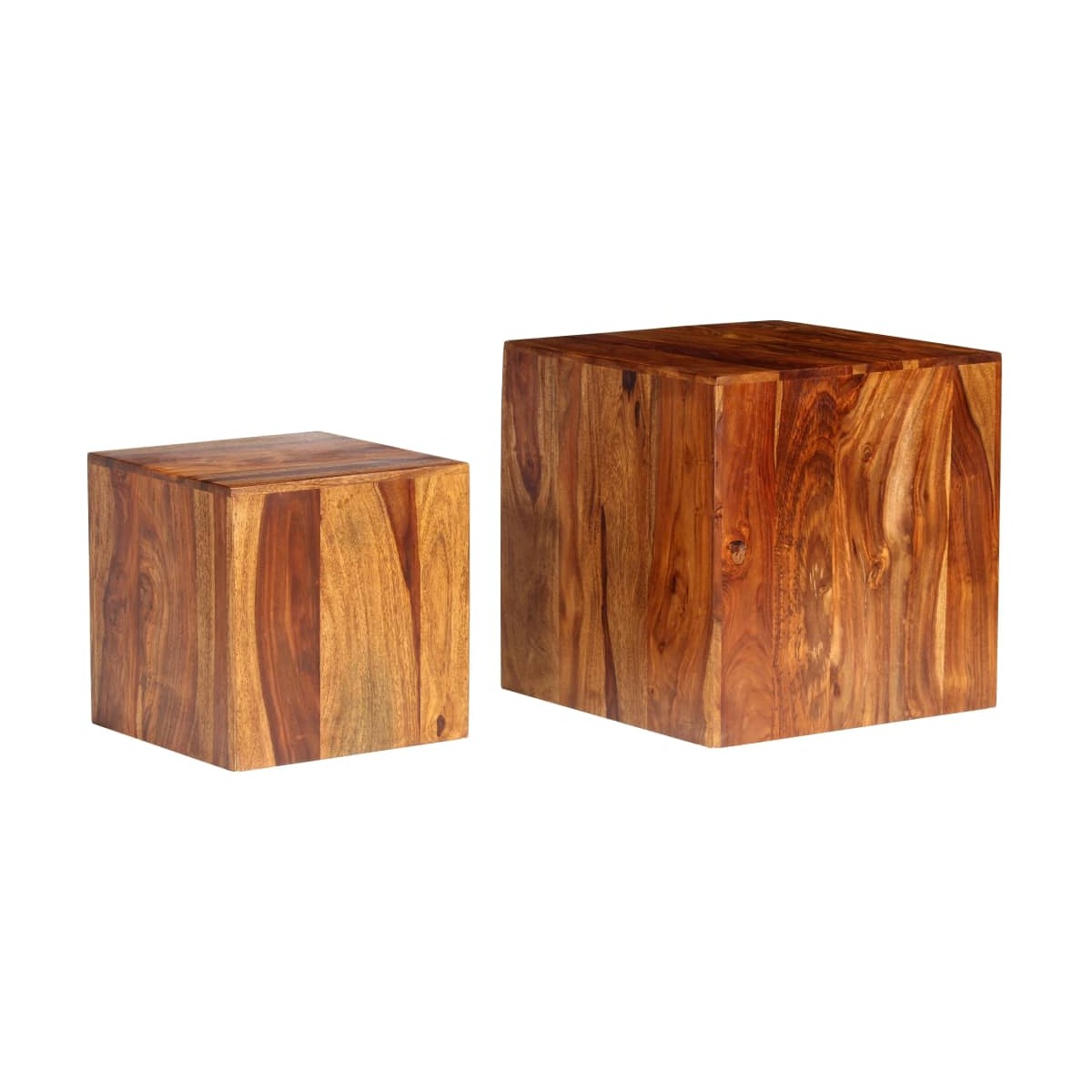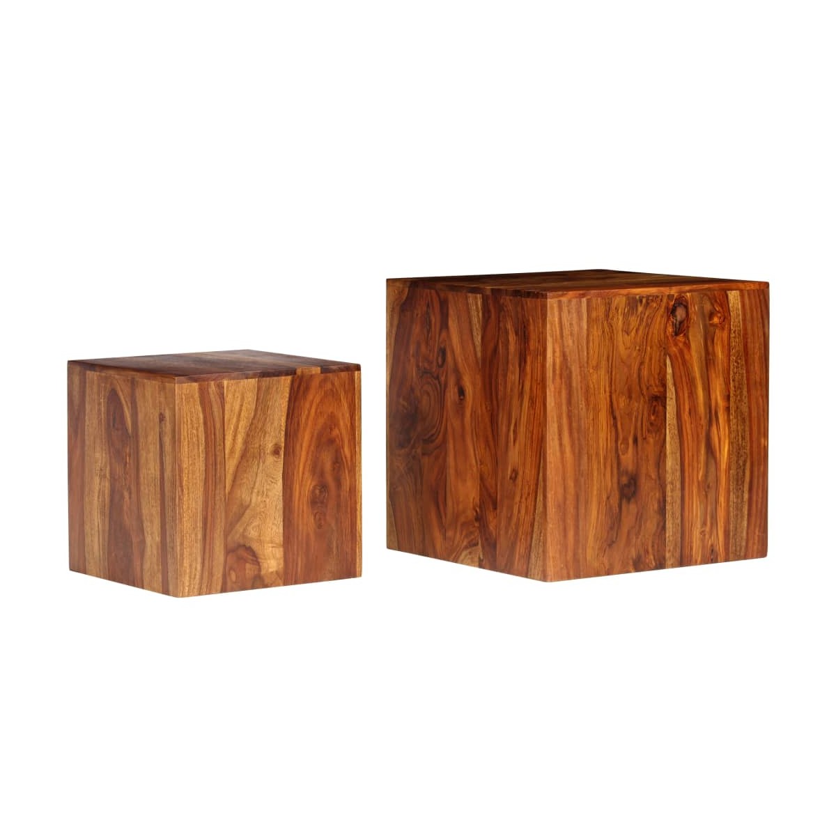 Nuestro set de mesas de centro único emana un encanto vintage y será un aporte distintivo para su casa con su diseño llamativo. Estas mesas están hechas de madera maciza de sheesham y también se pueden utilizar como mesas auxiliares o mesitas de sofá. Sheesham es una madera dura tropical que es famosa por sus ricas vetas y también es llamada palo de rosa o palisandro. Cada paso del proceso se lleva a cabo con el mayor cuidado, tanto el pulido como la pintura o lacado. La artesanía y las bonitas vetas de la madera hacen que cada pieza de mobiliario sea única y ligeramente diferente del resto. La entrega incluye dos mesas de centro. Las mesas ya están montadas, no requieren ningún tipo de montaje. Nota importante: Las vetas de la madera y los colores pueden variar de una pieza a otra, lo que hace que cada una de nuestras mesas sea única; la entrega es aleatoria