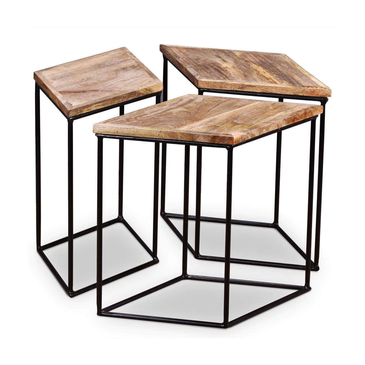 Esta mesa de centro de madera emana un encanto vintage y será un complemento atemporal para tu hogar. La mesa de centro modular consta de 3 mesas más pequeñas que pueden configurarse como una mesa de centro o utilizarse por separado como mesas auxiliares, mesillas de noche o taburetes. La mesa de centro está hecha de madera maciza de mango que es estable, duradera y bonita. La artesanía añade un espectacular estilo retro. Cada paso del proceso se lleva a cabo con el mayor cuidado, tanto el pulido como el lacado. La artesanía y las hermosas vetas de la madera hacen que cada pieza de mobiliario sea única y ligeramente diferente del resto. La estructura está hecha de hierro duradero que aporta robustez a las mesas. Nota importante: Los colores varían de una pieza a otra, por lo que cada una de nuestras mesas sea única. La entrega es aleatoria, lo que garantiza la exclusividad e individualidad del producto.