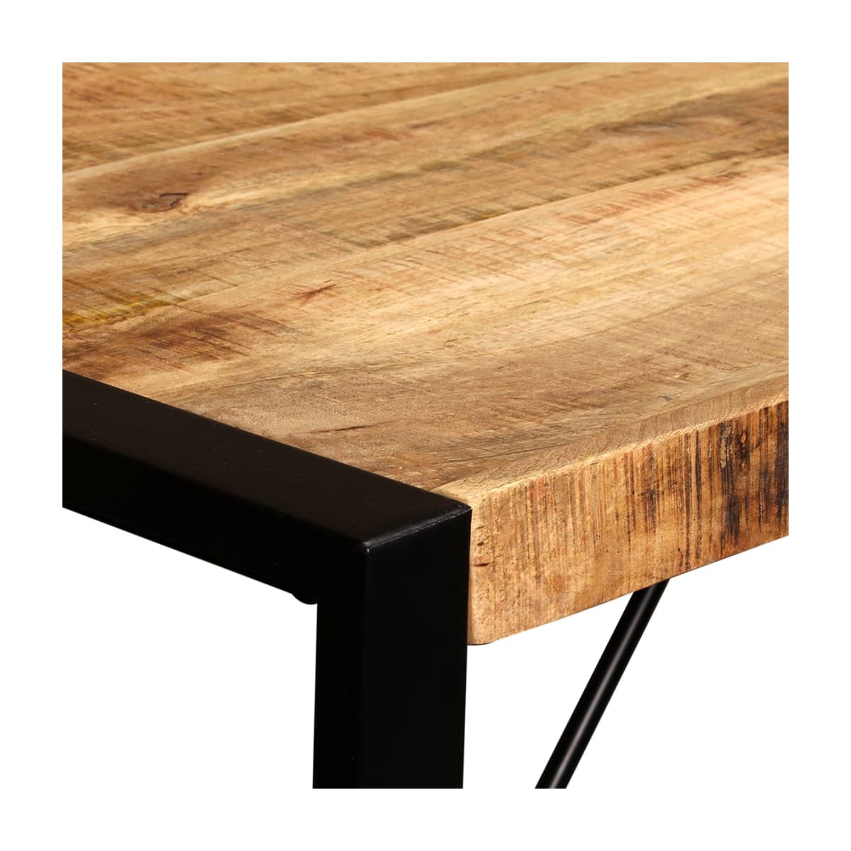Esta llamativa mesa de comedor de madera, con un estilo industrial, será un distintivo aporte para la cocina o el comedor. Esta mesa de comedor está hecha de madera maciza de mango rugosa, que es estable, duradera y hermosa, y la artesanía se suma al espectacular estilo retro de la mesa. Las patas de acero completan el aspecto industrial. Cada paso del proceso se realiza con el mayor cuidado, ya sea el pulido o el lacado. El montaje es fácil. Nota importante: La madera de mango rugosa presenta vetas naturales, por lo que cada una de nuestras mesas de comedor es única y ligeramente diferente al resto. La entrega es aleatoria, asegurando la exclusividad e individualidad del producto.