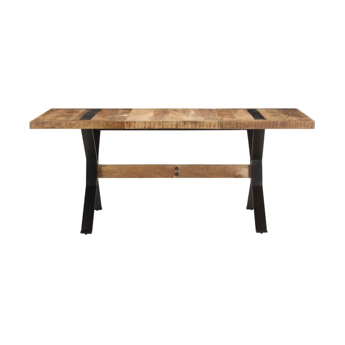 Esta mesa de comedor de madera de estilo industrial es un aporte fascinante para tu comedor o cocina. La mesa de comedor está hecha de madera de mango rugosa, una madera dura tropical con fuerza para soportar peso. También es resistente al desgaste y al paso del tiempo, por lo que estable y duradera. La artesanía y las hermosas vetas de la madera hacen que cada mueble sea único y ligeramente diferente al anterior. Las fuertes patas de acero con recubrimiento en polvo añaden un plus de estabilidad a la mesa. Nota importante: Los colores y las vetas de la madera varían de una pieza a otra, por lo que cada una es única; la entrega es aleatoria.
