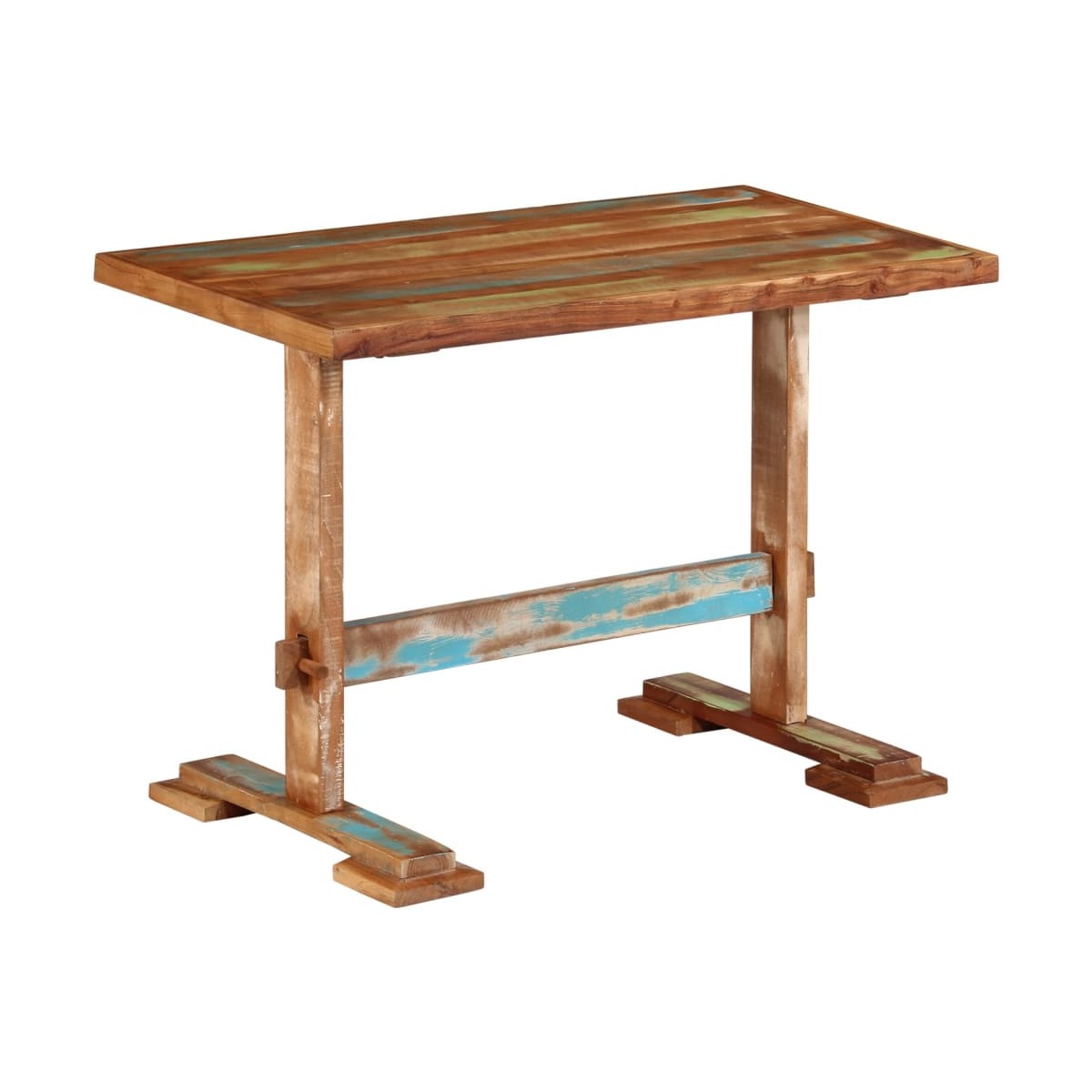 Esta mesa de comedor será un gran aporte para el comedor o la cocina. Madera maciza reciclada: La madera maciza reciclada consta de distintas maderas reutilizadas como la teca, la madera de mango, de pino y de haya. Dichos materiales proceden de antiguas construcciones como fábricas, cobertizos y barcos. Como cada pieza está hecha a mano, los colores variarán en cada producto.Superficie práctica: La robusta superficie de la mesa de cocina es perfecta para colocar comidas, bebidas y objetos decorativos.Patas de madera: Las patas de madera dan a la mesa de comedor un aspecto natural y agradable,además de garantizar su estabilidad. Combina bien con cualquier decoración de casa. Información útil:Los colores pueden variar de una pieza a otra, lo que hace que cada pieza sea única y ligeramente diferente del resto. La entrega es aleatoria, asegurando la exclusividad e individualidad del producto.