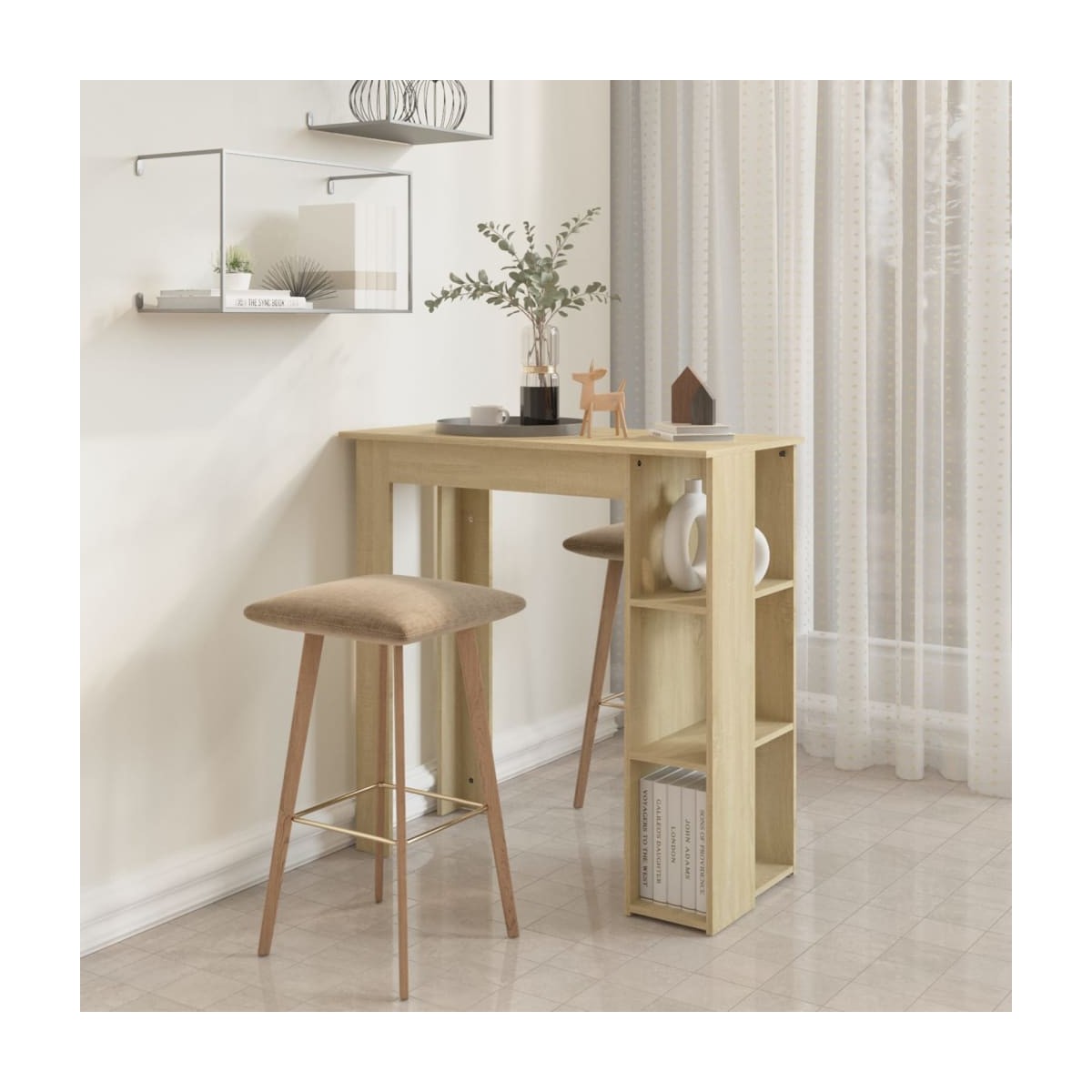 Esta mesa alta es la elección perfecta para pisos pequeños o donde el espacio es un poco limitado. Su diseño moderno hace de la mesa un aporte chic a tu cocina o comedor. Equipada con 3 estantes de almacenamiento, esta mesa de bistró brinda un amplio espacio para colocar botellas de vino u otros artículos. Gracias a la construcción, es duradera, estable y fácil de limpiar.
