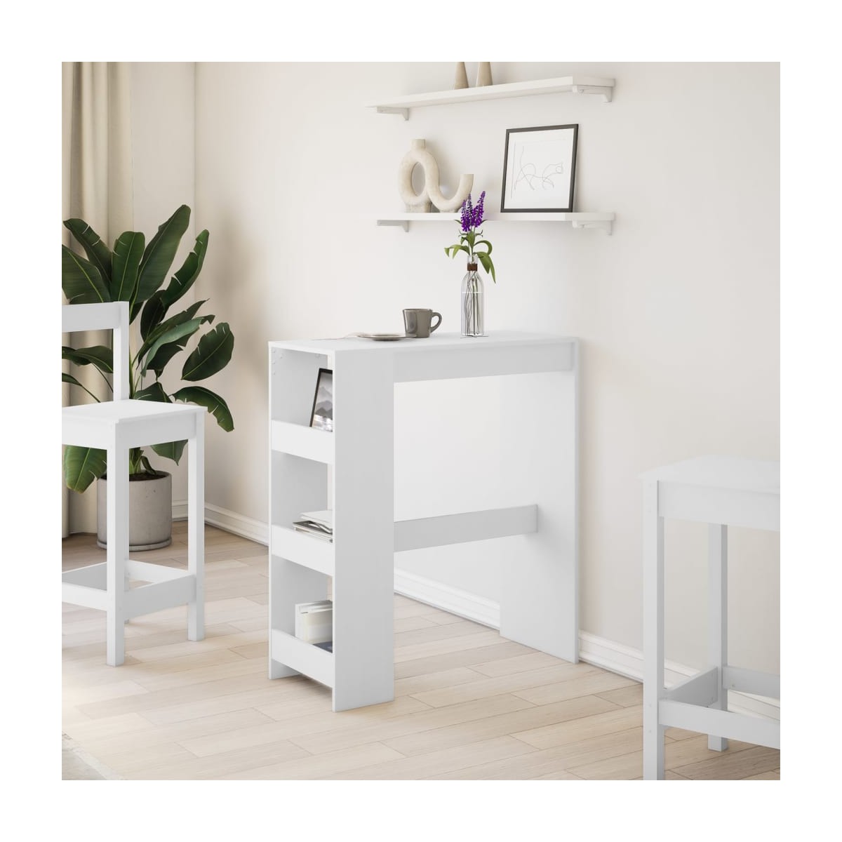 Elegir esta mesa de bar añade estética y practicidad a tu espacio. Material estable y duradero: La madera de ingeniería es un material duradero y estable con una superficie lisa que es resistente a la humedad, la deformación y la rotura, lo que la convierte en una opción fiable para una variedad de proyectos.Amplio espacio de almacenamiento: Diseñado con tres estantes, este mueble bar ofrece un amplio espacio de almacenamiento para botellas, vinos, libros, marcos de fotos, utensilios de cocina, vajilla y otros artículos esenciales.Ubicación versátil: Ya sea en la cocina, la sala de estar o el comedor, esta mesa alta realza cualquier espacio. Su diseño acogedor invita a la permanencia, lo que lo convierte en una pieza central perfecta para reuniones íntimas y conversaciones informales.Fácil mantenimiento: Gracias a su superficie lisa, la mesa alta es fácil de limpiar con un paño húmedo y requiere menos mantenimiento. Advertencia:Para evitar que vuelque, este producto debe usarse con el dispositivo de fijación a la pared suministrado. Información útil:Los tornillos y los tacos para el interior de la pared no están incluidos. Te recomendamos buscar y utilizar tornillos y tacos adecuados específicamente para tus paredes. Si no estás seguro, puedes consultar con un profesional. Lee y sigue cada paso de las instrucciones.