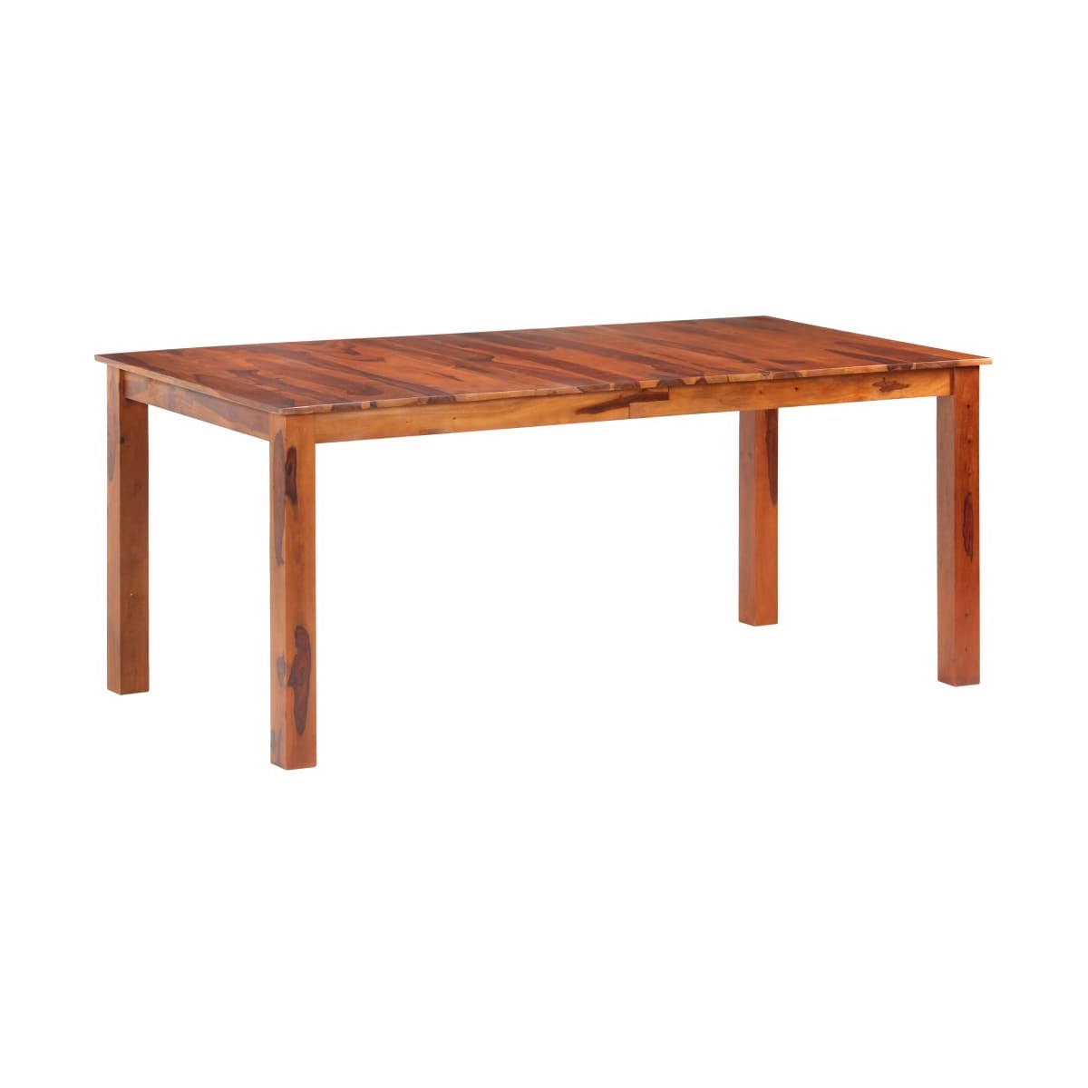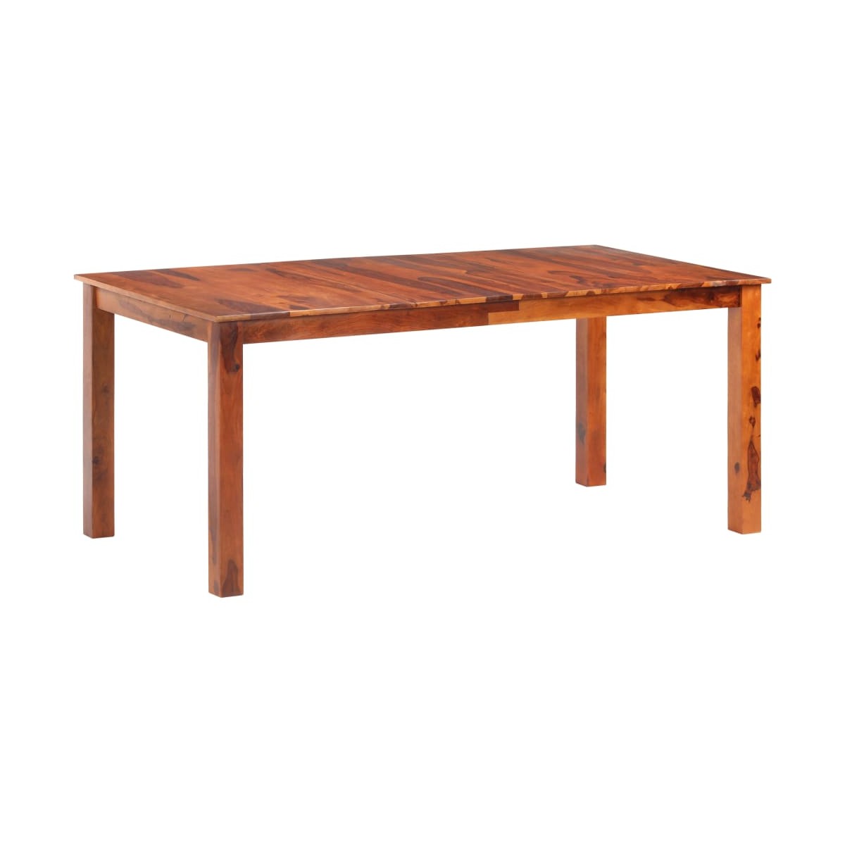 Esta mesa de comedor única de madera es elegante pero práctica. Su sencilla elegancia es ideal para disfrutar de tus comidas en familia. Esta mesa hecha de madera maciza de Sheesham con acabado miel, es duradera, de fácil mantenimiento y aportará un toque de encanto rústico a tu casa. Sheesham es una madera dura tropical que es famosa por sus ricas vetas y también conocida como palisandro o palo de rosa. Las hermosas vetas de la madera hacen que cada mueble sea único y ligeramente diferente al siguiente. Las patas robustas también aportar solidez. Nota importante: Los colores varían de una pieza a otra, haciendo que cada pieza sea única; la entrega es aleatoria.
