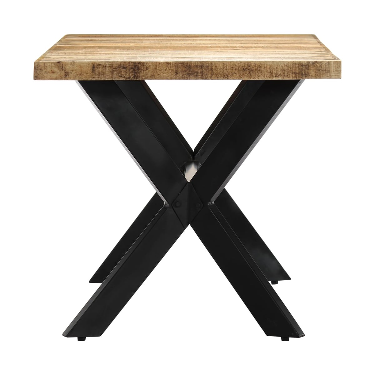 - Material: Superficie de madera maciza de mango en bruto + patas de acero con recubrimiento en polvo