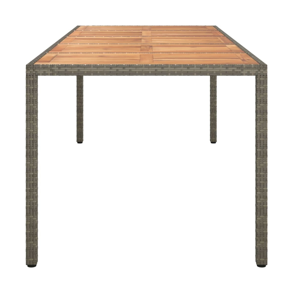 Esta elegante mesa de jardín de ratán sintético es la opción perfecta para que tú y tu familia disfrutéis del tiempo libre. Material de primera calidad: La madera maciza de acacia es un bonito material natural. La madera de acacia es una madera dura tropical, densa, robusta y duradera.Estructura robusta: La estructura de acero con recubrimiento en polvo garantiza la robustez y la estabilidad de la mesa de comedor.Superficie espaciosa: Esta mesa de madera maciza te ofrece una amplia superficie. Podrás colocar aperitivos, bebidas y cualquiera de tus adornos favoritos. Nota:Para prolongar la vida de tus muebles de exterior, te recomendamos que los protejas con una funda impermeable.