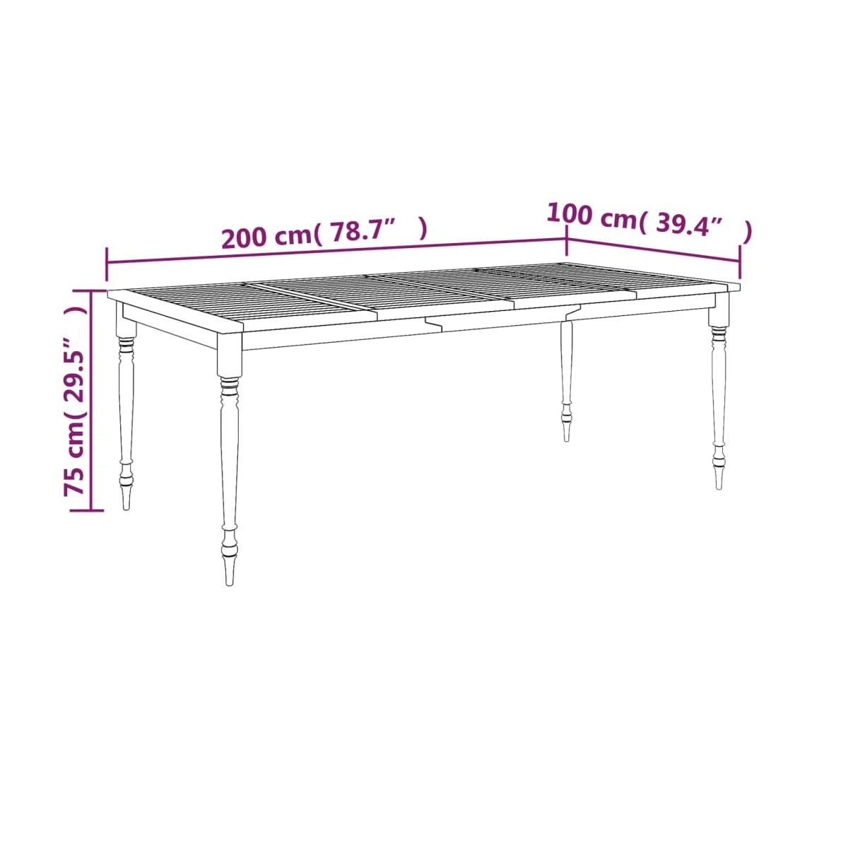 - Dimensiones: 200 x 100 x 75 cm (largo x ancho x alto)
