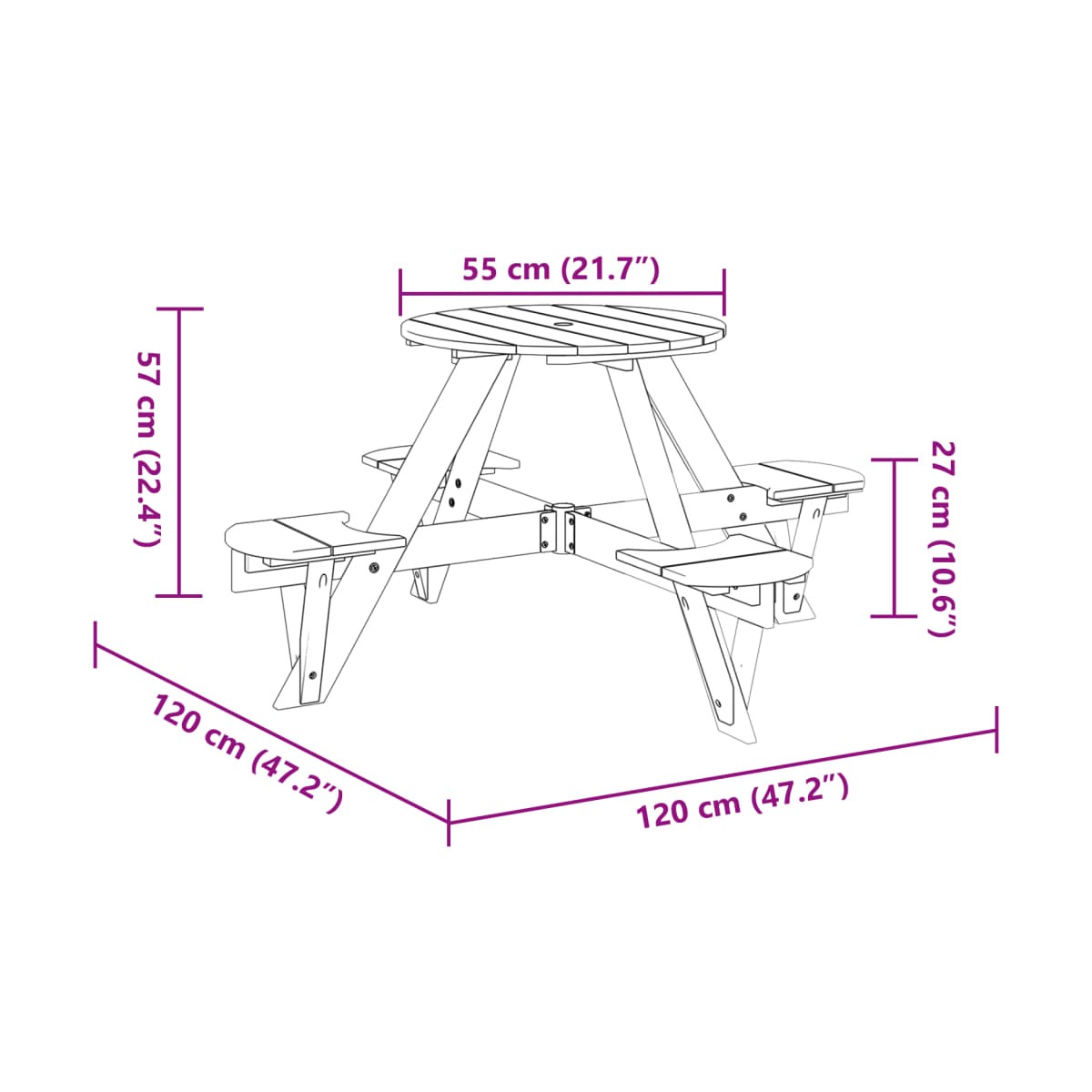 - Diámetro de la mesa: 55 cm
