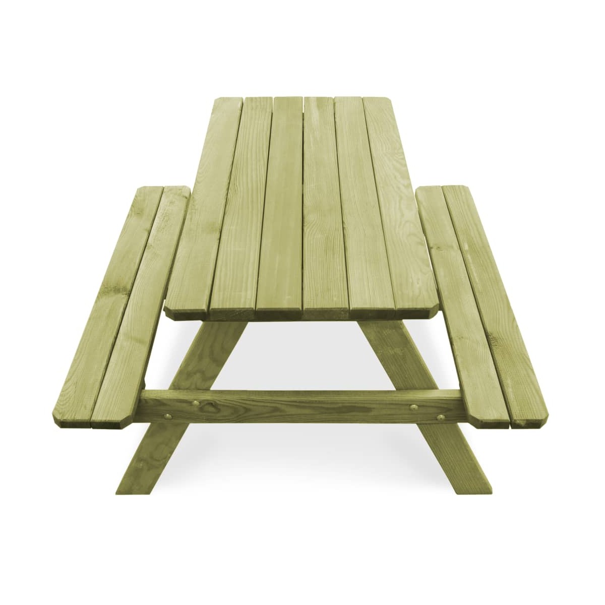 Esta mesa de pícnic de madera para jardín con bancos dará un toque de estilo natural al espacio al aire libre con el diseño rústico. Compuesto por 1 gran tablero y 2 bancos, ¡este conjunto de jardín es ideal para que tus familiares y amigos se lo pasen muy bien! El conjunto de jardín está hecho de madera de pino impregnada de alta calidad, por lo que es duradero y resistente a la intemperie y la podredumbre. Debajo del tablero hay un gran espacio de almacenaje para mantener los objetos pequeños bien organizados. Es fácil de desplazar para adaptarlo a cualquier entorno al aire libre. Este conjunto es fácil de montar. Ten en cuenta que la madera es un producto natural y puede presentar ligeras imperfecciones.