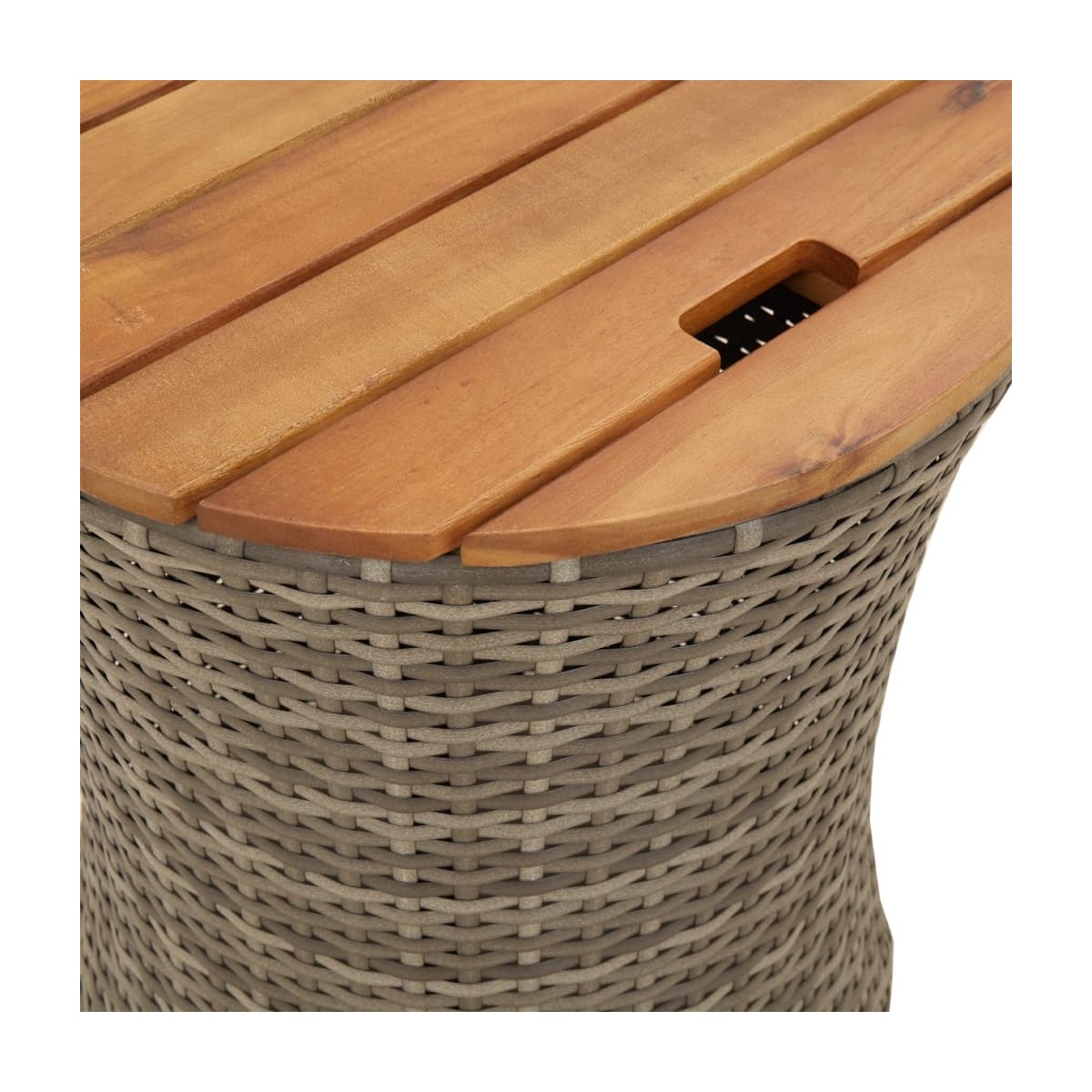 Reúnete en torno a estas elegantes mesas auxiliares de jardín para disfrutar de un café o charlar con la familia y los amigos en el jardín, el patio o la terraza. Material duradero: El ratán PE, también conocido como ratán sintético, es un material sintético resistente y de bajo mantenimiento que se parece al ratán natural. Es ligero, fácil de limpiar y se usa comúnmente para muebles de exterior debido a su durabilidad y propiedades resistentes a la intemperie.Superficie de madera: La superficie de la mesa de exterior es de madera de acacia resistente y duradera, por lo que es fácil de limpiar con un paño húmedo y añade un toque de elegancia a tu espacio exterior.Estructura robusta y estable: La estructura de acero con recubrimiento en polvo garantiza que la mesa auxiliar de sofá sea resistente y estable para usarla a diario al aire libre.Ahorro de espacio: La mesa auxiliar de patio más pequeña se puede colocar dentro de la grande para ahorrar espacio. Información útil:Para asegurarte de que tus muebles de exterior se mantengan hermosos, recomendamos protegerlos con una funda impermeable.
