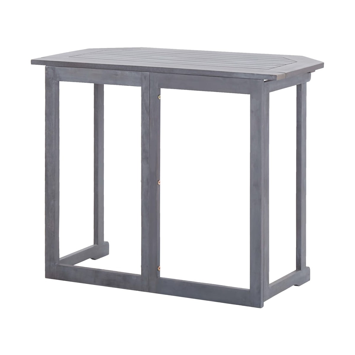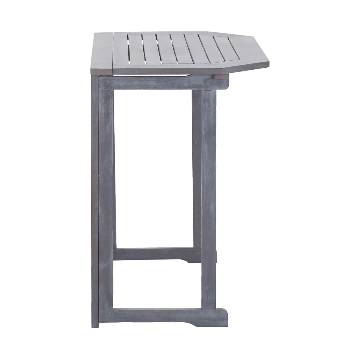 Esta mesa de balcón plegable de madera emana un encanto rústico y será un excelente aporte para tu balcón, terraza o patio. Sirve como mesa de centro para colocar bebidas o como encimera práctica para guardar artículos como herramientas de jardinería y macetas. Hecha a mano de madera de acacia maciza color gris deslavado, nuestra mesa de exterior es duradera, fácil de mantener y resistente a la intemperie. La mesa del balcón se puede plegar para ahorrar espacio cuando no se usa. Este producto necesita montaje. Ten en cuenta que la madera es un producto natural y puede mostrar imperfecciones.