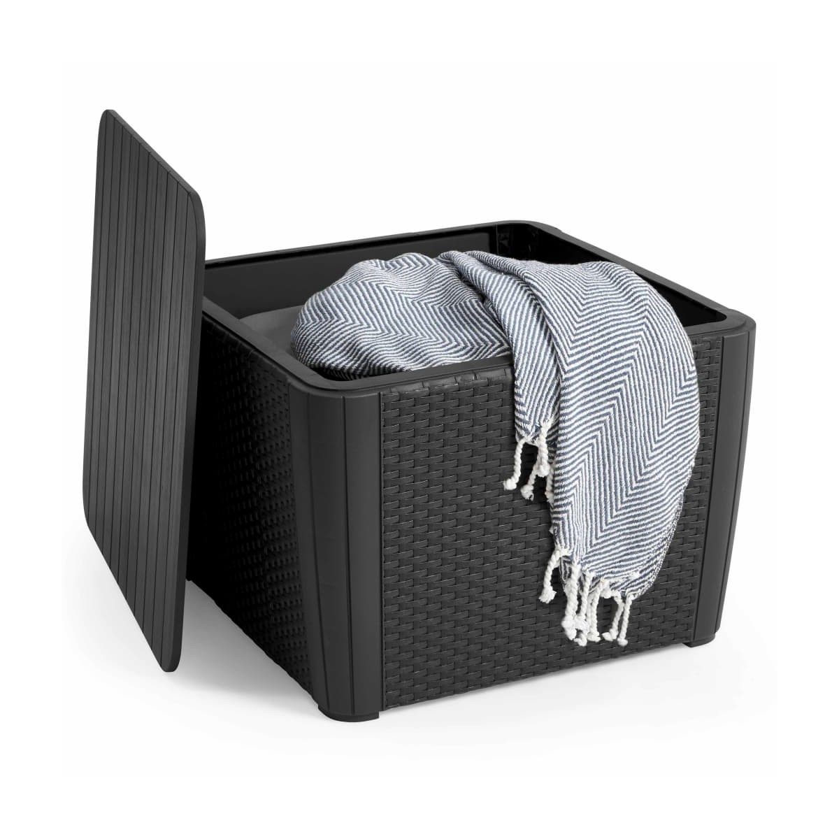 Amplía tus muebles de jardín con esta mesa auxiliar multifuncional de talla grande de Luzon de Keter. La mesa auxiliar Luzon, de gran tamaño, está fabricada con plástico PP (polipropileno) resistente a la intemperie y sin necesidad de mantenimiento, con un moderno diseño plano de aspecto de ratán y elegantes elementos Rezolith con aspecto de madera falsa. Nunca tendrás que preocuparte de que estos materiales, que no necesitan mantenimiento, se decoloren, oxiden, pudran o descascarillen, lo que hace que la mesa auxiliar sea ideal para su uso diario en el exterior. Tiene un cómodo compartimento para guardar los objetos que te gustaría tener cerca.