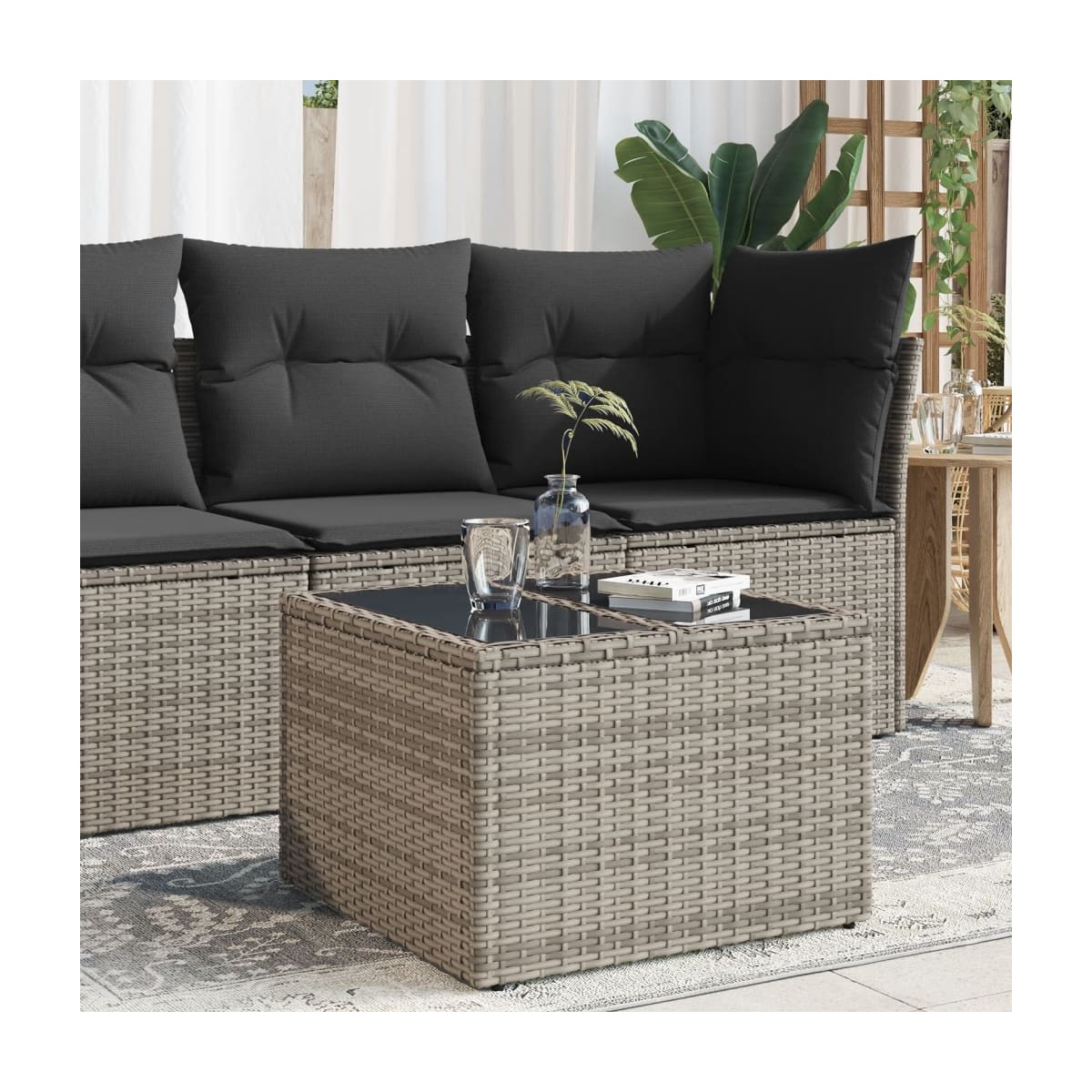 ¡Reúnete alrededor de esta mesa de jardín para disfrutar de una taza de café o charlar con tu familia y amigos en el jardín, el patio o terraza! Material duradero: El ratán de PE, también conocido como ratán sintético, es un material sintético resistente y de bajo mantenimiento que se parece al ratán natural. Es ligero, fácil de limpiar y se usa comúnmente para muebles de exterior debido a su durabilidad y propiedades resistentes a la intemperie.Superficie de vidrio: La superficie de la mesa de exterior es de vidrio templado resistente y duradero, por lo que es fácil de limpiar con un paño húmedo y añade un toque de elegancia a tu espacio exterior.Estructura robusta y estable: La estructura de acero con recubrimiento en polvo garantiza que el mueble de jardín sea resistente y estable para usarlo a diario al aire libre. Información útil:Para asegurarte de que tus muebles de exterior se mantengan hermosos, recomendamos protegerlos con una funda impermeable.