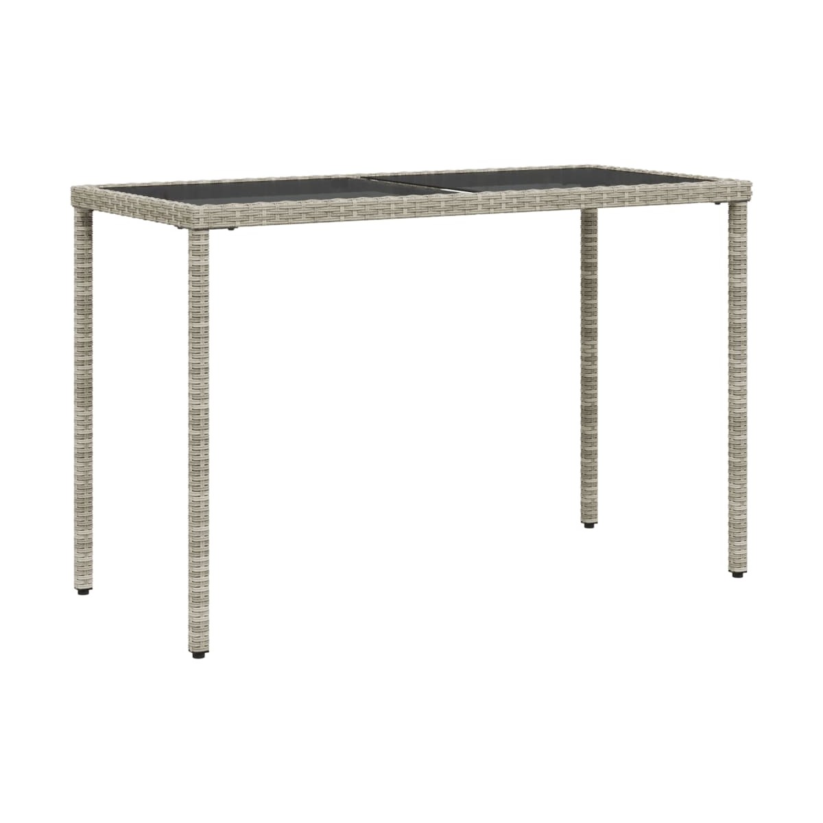 Esta mesa de jardín con superficie de vidrio, diseñada con líneas sencillas y limpias, es una excelente opción para el jardín, el patio y cualquier otro espacio al aire libre. Material duradero: El ratán PE, también conocido como ratán sintético, es un material sintético resistente y de bajo mantenimiento que se parece al ratán natural. Es ligero, fácil de limpiar y se usa comúnmente para muebles de exterior debido a su durabilidad y propiedades resistentes a la intemperie.Superficie de vidrio: La superficie de la mesa de exterior es de vidrio templado resistente y duradero, por lo que es fácil de limpiar con un paño húmedo y añade un toque de elegancia a tu espacio exterior.Estructura robusta y estable: La estructura de acero con recubrimiento en polvo garantiza que el mueble de jardín sea resistente y estable para usarlo a diario al aire libre. Información útil:Para asegurarte de que tus muebles de exterior se mantengan hermosos, recomendamos protegerlos con una funda impermeable.