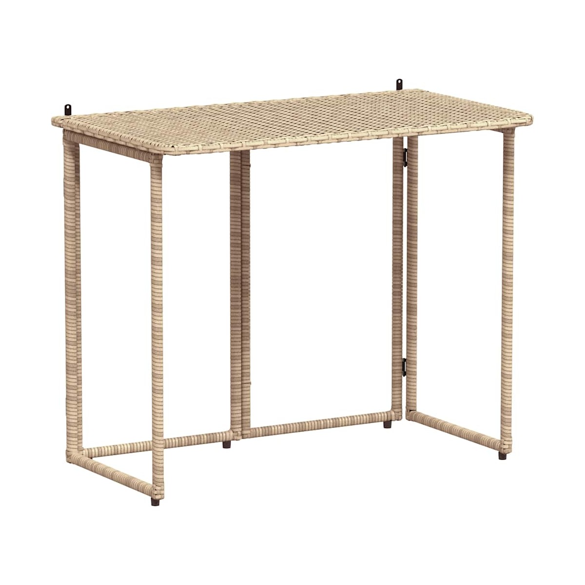 Esta clásica mesa de jardín plegable, diseñada con líneas limpias y simples, es una excelente opción para su jardín, patio y otros espacios al aire libre. Material duradero: El ratán sintético, también conocido como ratán sintético, es un material sintético resistente y de bajo mantenimiento que se parece al ratán natural. Es ligero, fácil de limpiar y se usa comúnmente para muebles de exterior debido a su durabilidad y propiedades resistentes a la intemperie.Fácil de transportar y almacenar: la mesa para exteriores tiene un diseño plegable y compacto, lo que permite un fácil almacenamiento y portabilidad. Es una opción ideal para actividades al aire libre.Superficie estable: La superficie estable de la mesa de patio es ideal para colocar la bebida o cualquier otra cosa que necesites a mano.Diseño que ahorra espacio: la mesa de jardín rectangular tiene bordes rectos, lo que le permite ajustarse perfectamente a una pared o alféizar de una ventana para ahorrar espacio. Los soportes de pared brindan mayor estabilidad al fijar la mesa a la pared.Estructura robusta y estable: La estructura de acero con recubrimiento en polvo garantiza que el mueble de jardín sea resistente y estable para usarlo a diario al aire libre. Advertencia:Para evitar que vuelque, este producto debe usarse con el dispositivo de fijación a la pared suministrado. Información útil:Para asegurarte de que tus muebles de exterior se mantengan hermosos, recomendamos protegerlos con una funda impermeable.