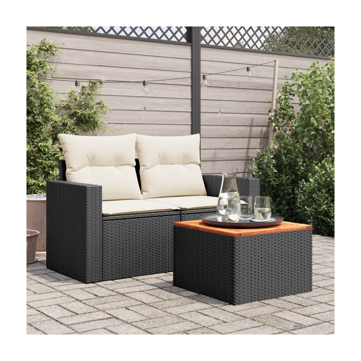 - Material: Ratán PE, acero con recubrimiento en polvo, madera maciza de acacia con acabado de aceite